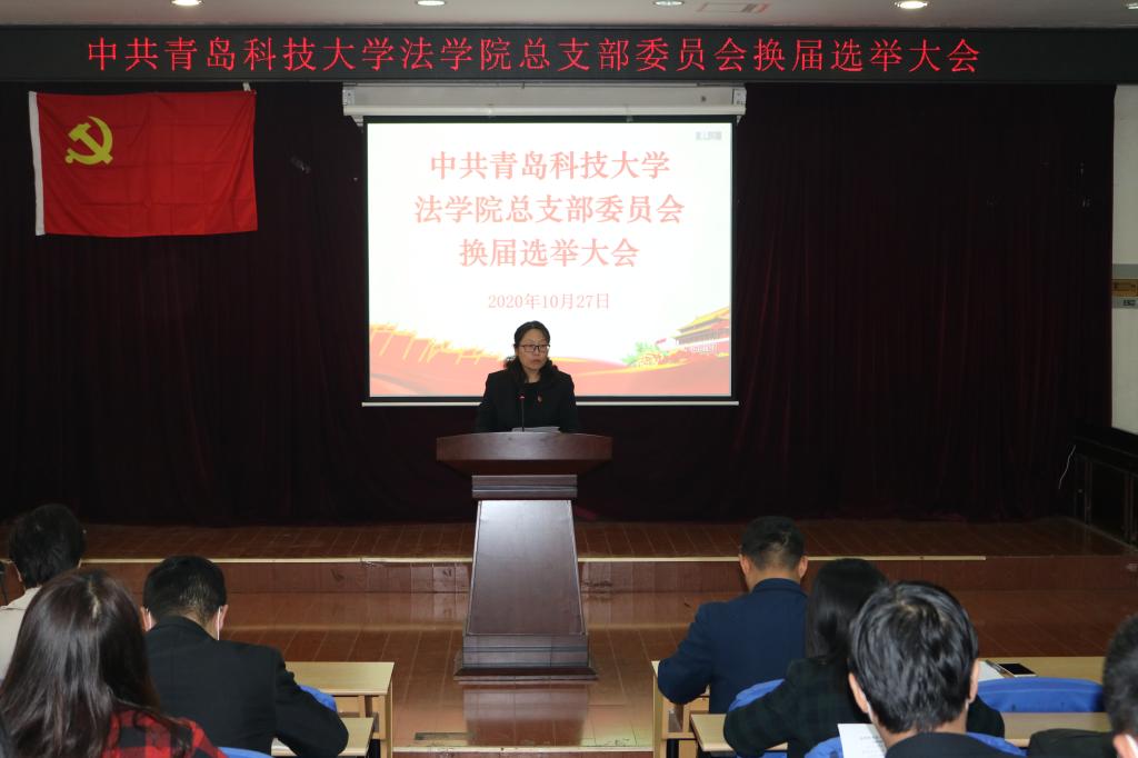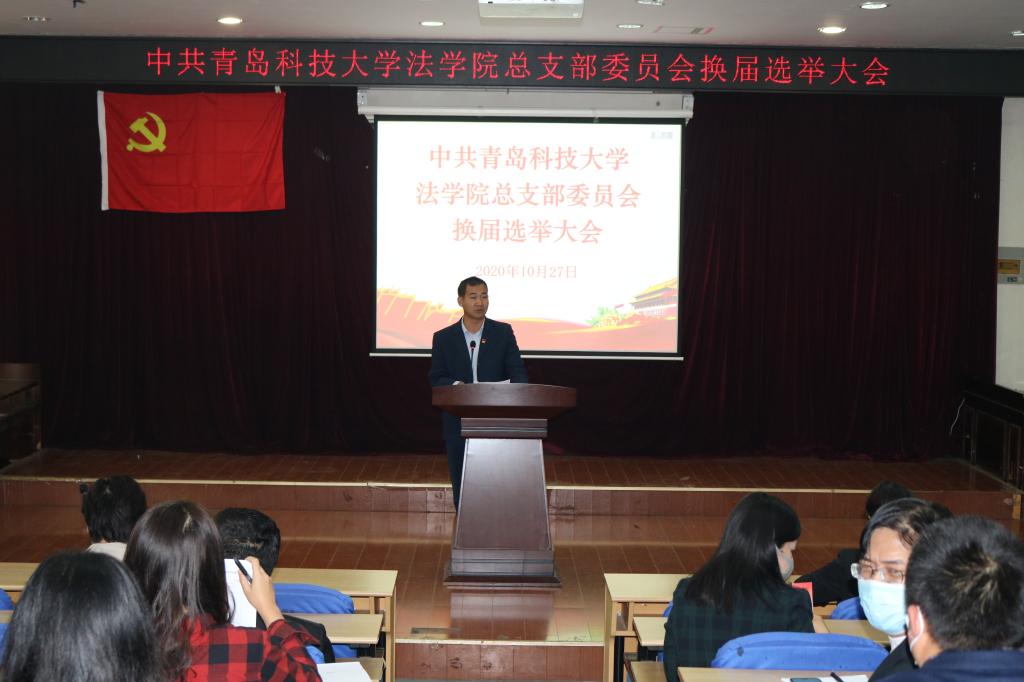 10月27日下午,太阳成集团tyc9728党总支换届选举大会在崂山校区模拟法庭召开,学院全体党员参加大会,会议由党总支副书记兼副院长刘俊杰主持。
