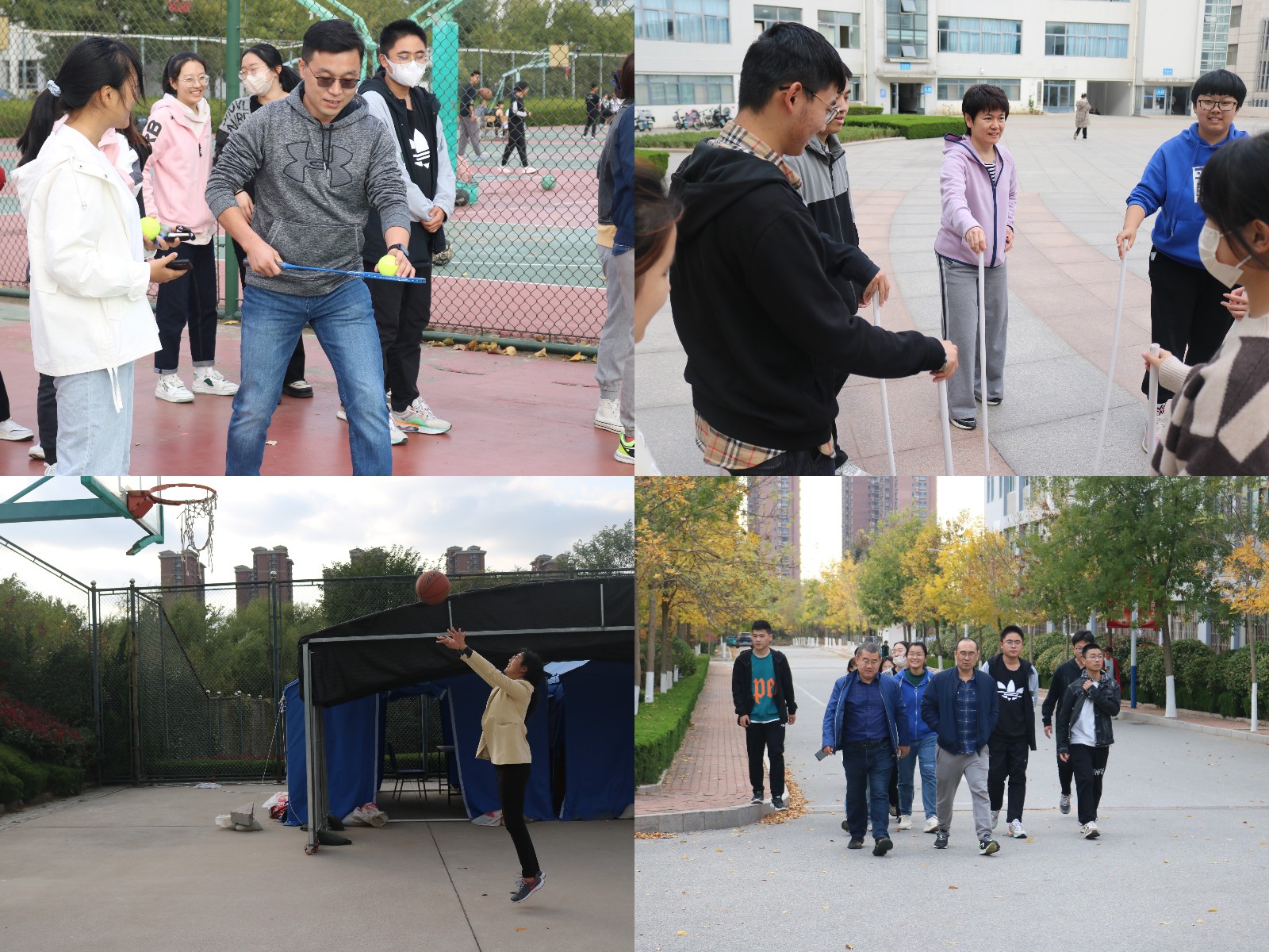 本次健步走活动将趣味体育活动与健步走相结合,在南苑操场、明德楼、北苑篮球场设置三个打卡点及“球球快跑”、“不倒森林”、“定点投篮”、“接力跳绳”四项趣味活动。学院教师与学生随机分组,在健步走抵达打卡点时完成相应活动方能继续前行。
