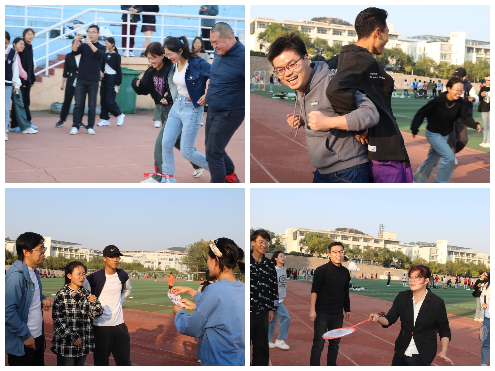 10月24日,太阳成集团tyc9728在南苑操场举办了师生趣味运动会,老师和同学们分组共同完成多人多足、趣味接力、你画我猜和默契大比拼四个项目。比赛过程中,老师们与同学们齐心协力,团结协作,一同享受运动带来的欢乐时光。赛后,老师们与同学们一起交流参赛感受,增进师生交流。