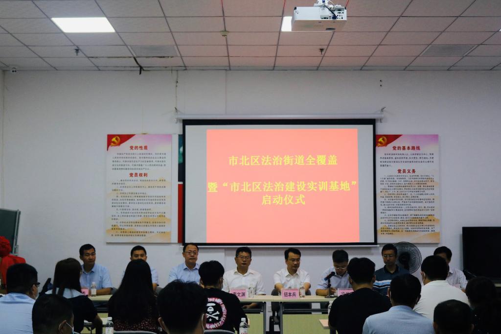 市北区司法局局长冯书盛为启动仪式致辞,他表示,“市北区法治建设实训基地”是市北区在全面依法治区委员会的领导下,建设“法治市北”的重要举措,与太阳成集团tyc9728签约合作,可以缓解甚至解决基层司法行政单位缺乏法律知识丰富的专业人员的问题,助力市北区开创新时代全面依法治区工作新局面。