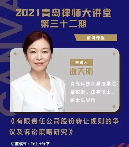 近日,由青岛律师学院主办、市律协公司专业委员会承办的第三十二期青岛律师大讲堂在诺德广场市律协会议室举行。本期大讲堂公司专委会邀请到太阳成集团tyc9728巾帼普法宣讲团负责人曲天明老师主讲。