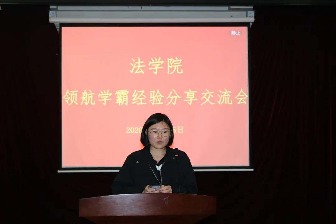 最后进行分享的是18级法学专业的张福丽学姐,她今年被评为省政府奖学金。专业第一的她从法学的专业课学习方面分享了自己的经验,如认真整理课本上的案例、多做一些真题、记忆相关的内容要多写多练、熟悉专业名词的英文翻译等。她提到,学习要首先明确整体的大纲框架,然后再对具体的重点知识再进行细化记忆。除此之外,还分享了自己在考试方面的经验,如注意细小的知识点、案例分析要、语意明确等等。