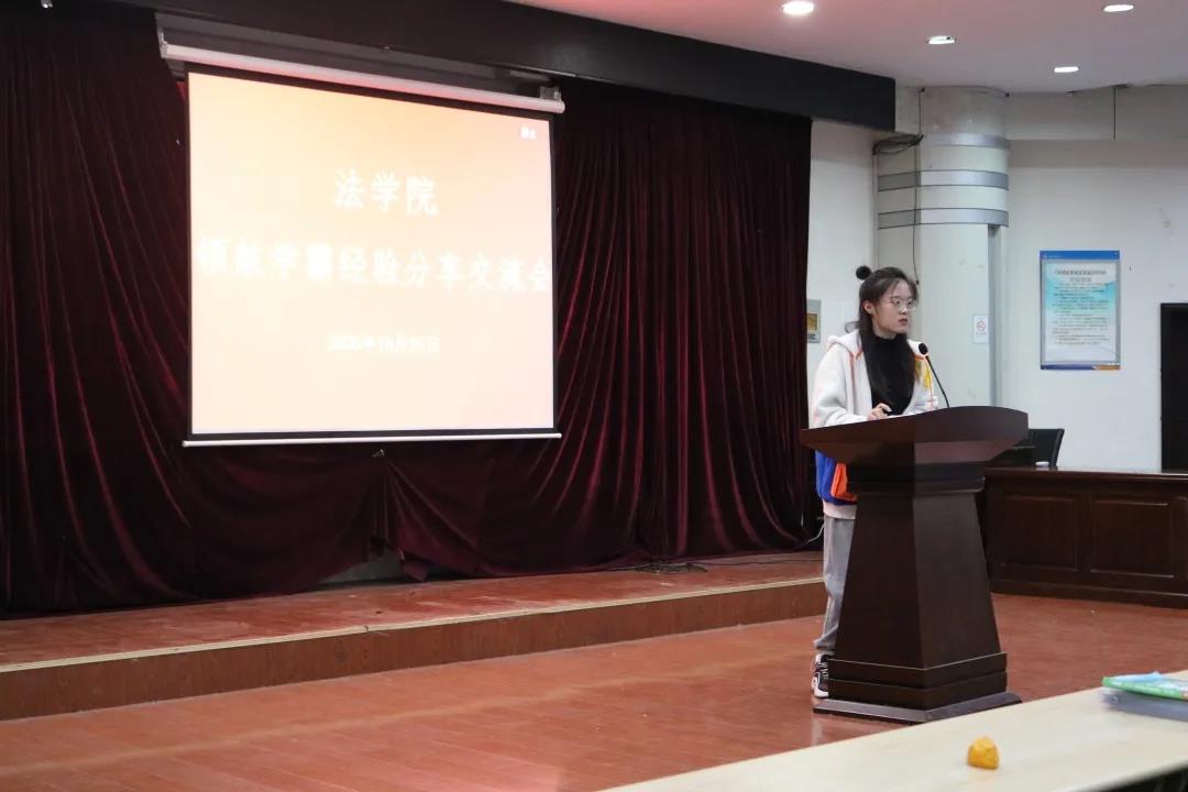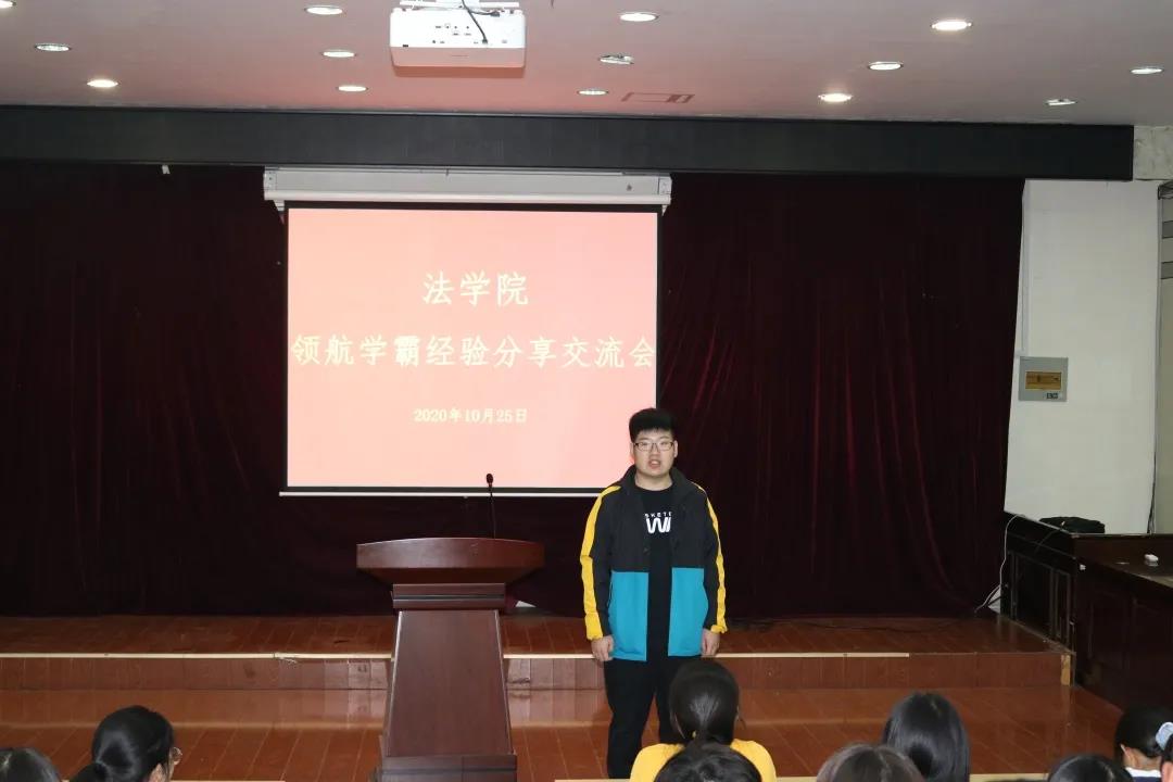 为了帮助2020级新生更好的适应大学生活,养成良好的学习习惯,树立正确的学习目标。10月25日晚,太阳成集团tyc9728在模拟法庭举办了领航学霸经验交流会。本次活动由分团委许磊老师主持,邀请了今年成功保研的张鑫玲、刘小莉学姐和获得省政府奖学金的张福丽学姐,三位学姐分别从保研资格获取、日常学习、实践活动、大学竞赛等方面分享了自己的经验和心得。