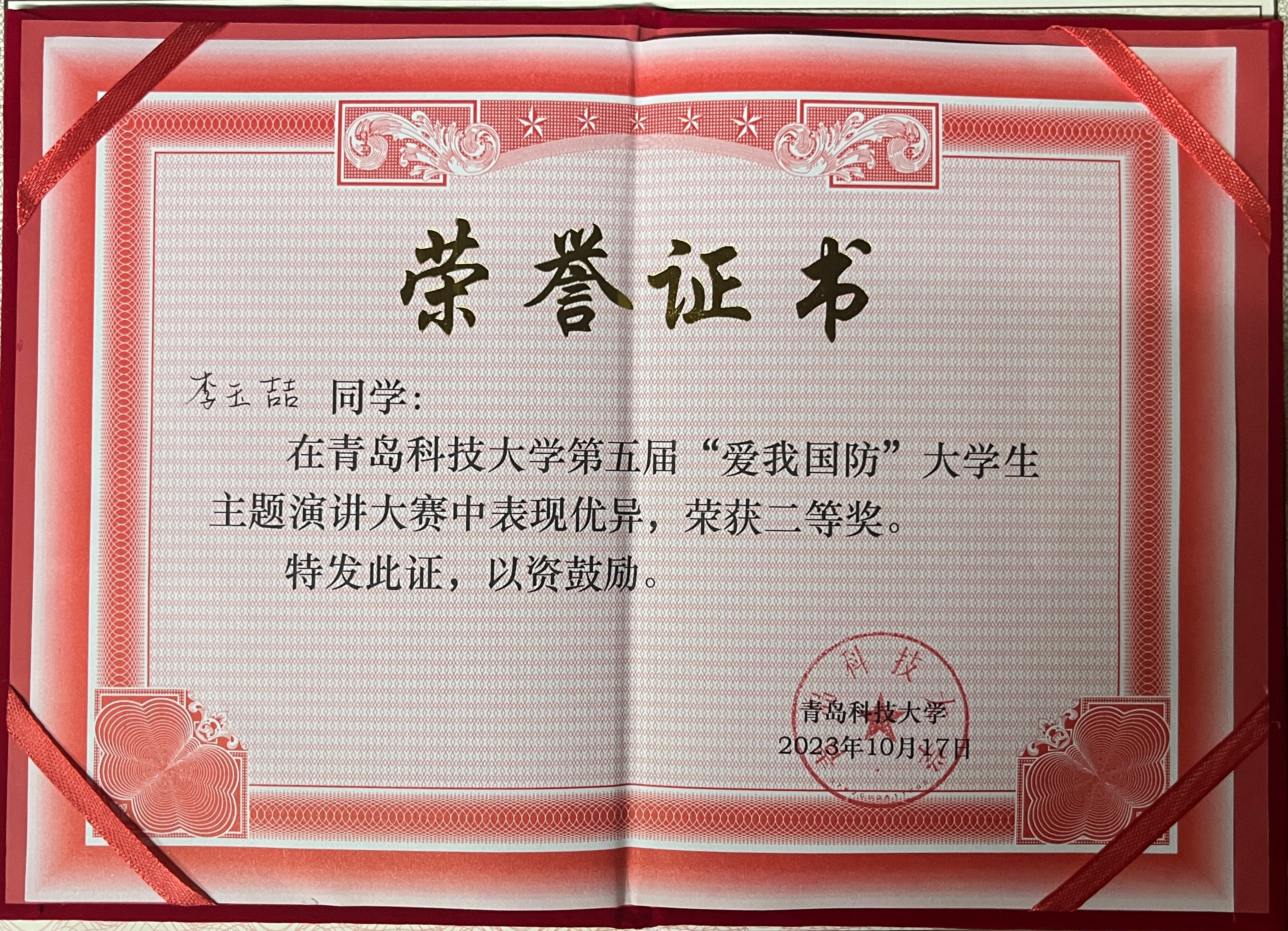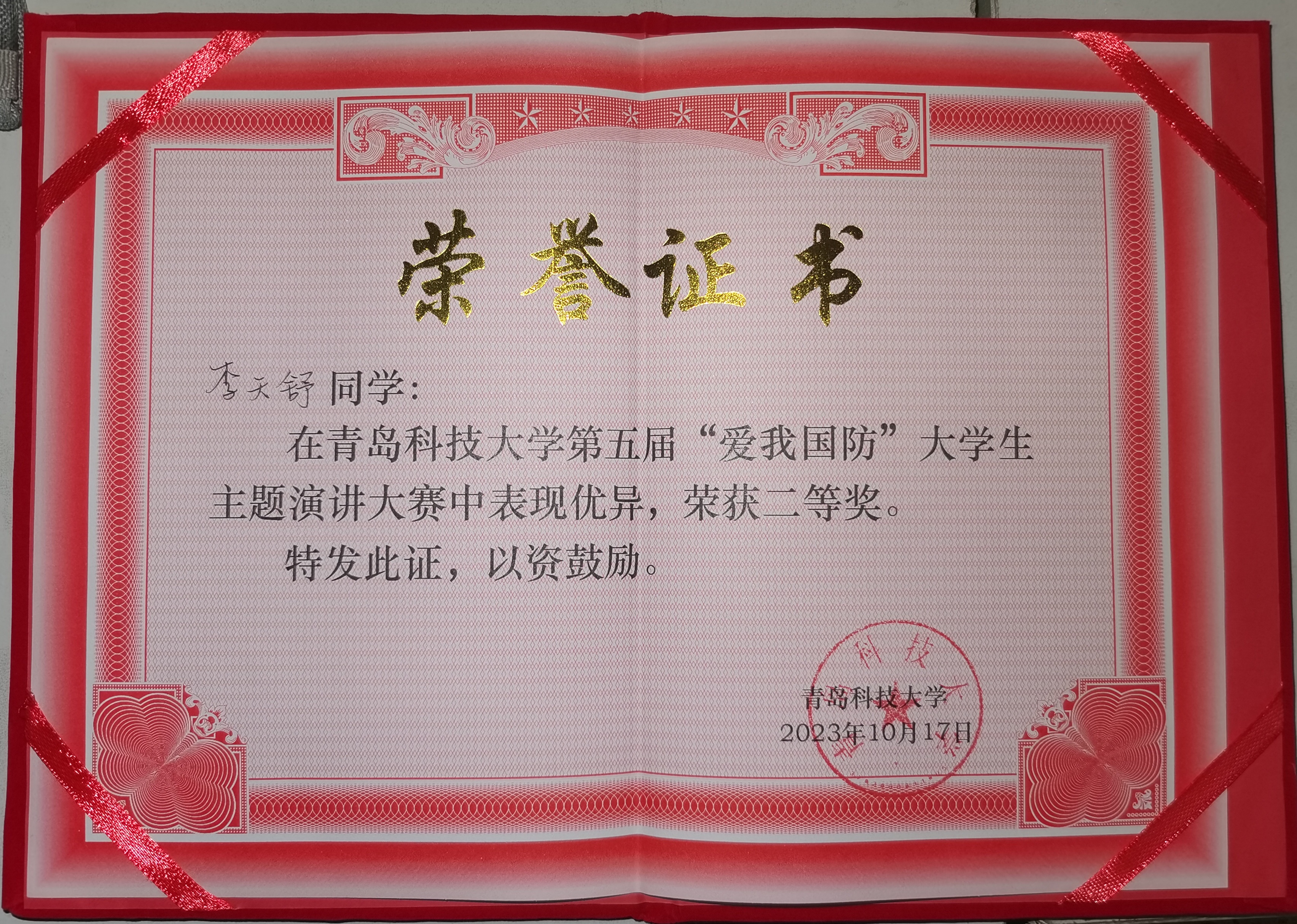 10月17日下午,中国·太阳集团tyc9728第五届“爱我国防”大学生主题演讲大赛暨退役大学生士兵巡回宣讲圆满落幕。太阳成集团tyc97283名学子表现突出,太阳成集团tyc9728学生周浩荣获一等奖,李玉喆、李天舒荣获二等奖。其中,周浩、李玉喆将代表学校参加“爱我国防”青岛市大学生主题演讲大赛。本次活动由市北区委宣传部、学校党委学生工作部(处)、武装部主办,机电工程学院承办,经过初赛和复赛的层层选拔,共有14名选手入围校级决赛。