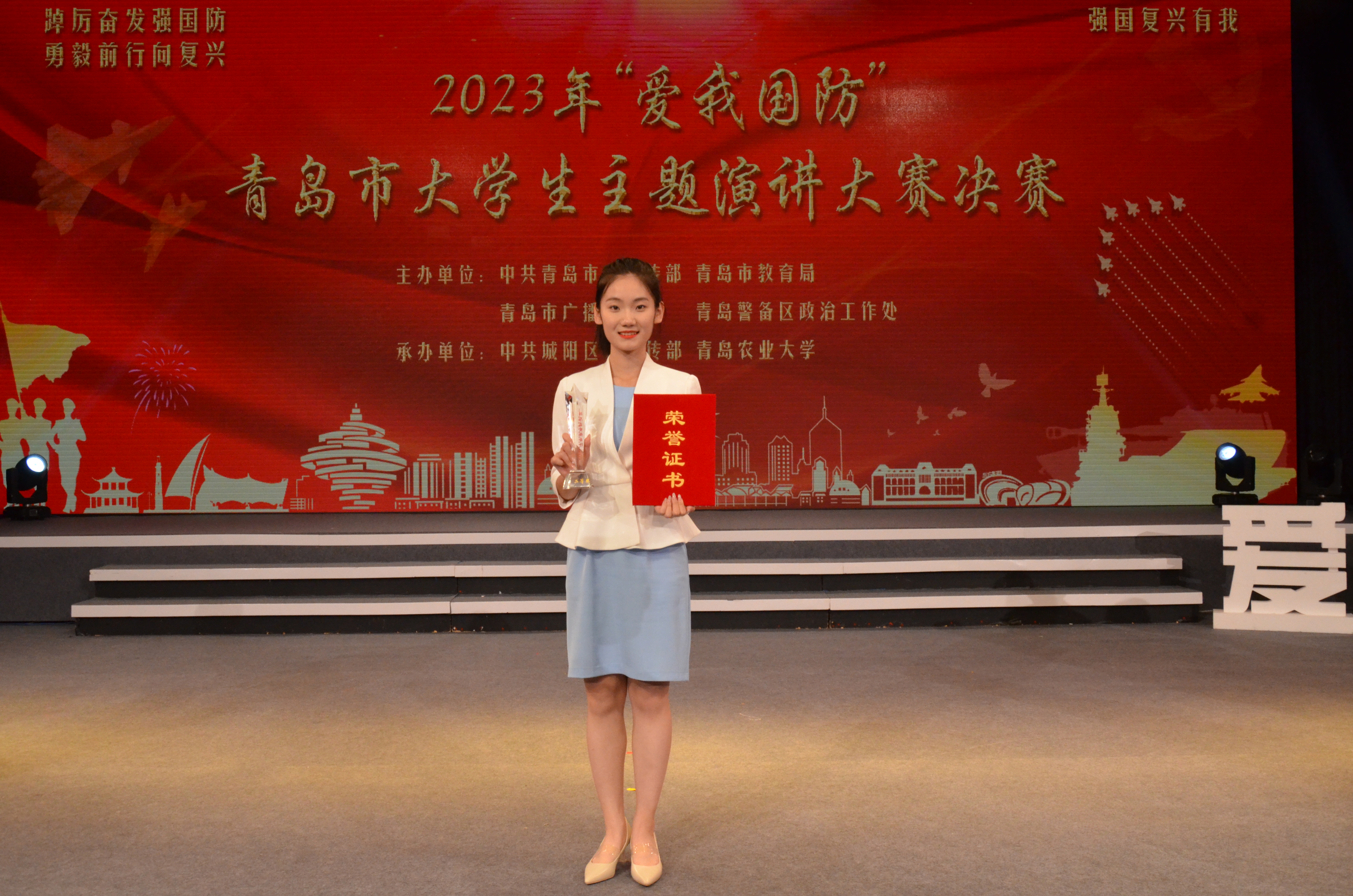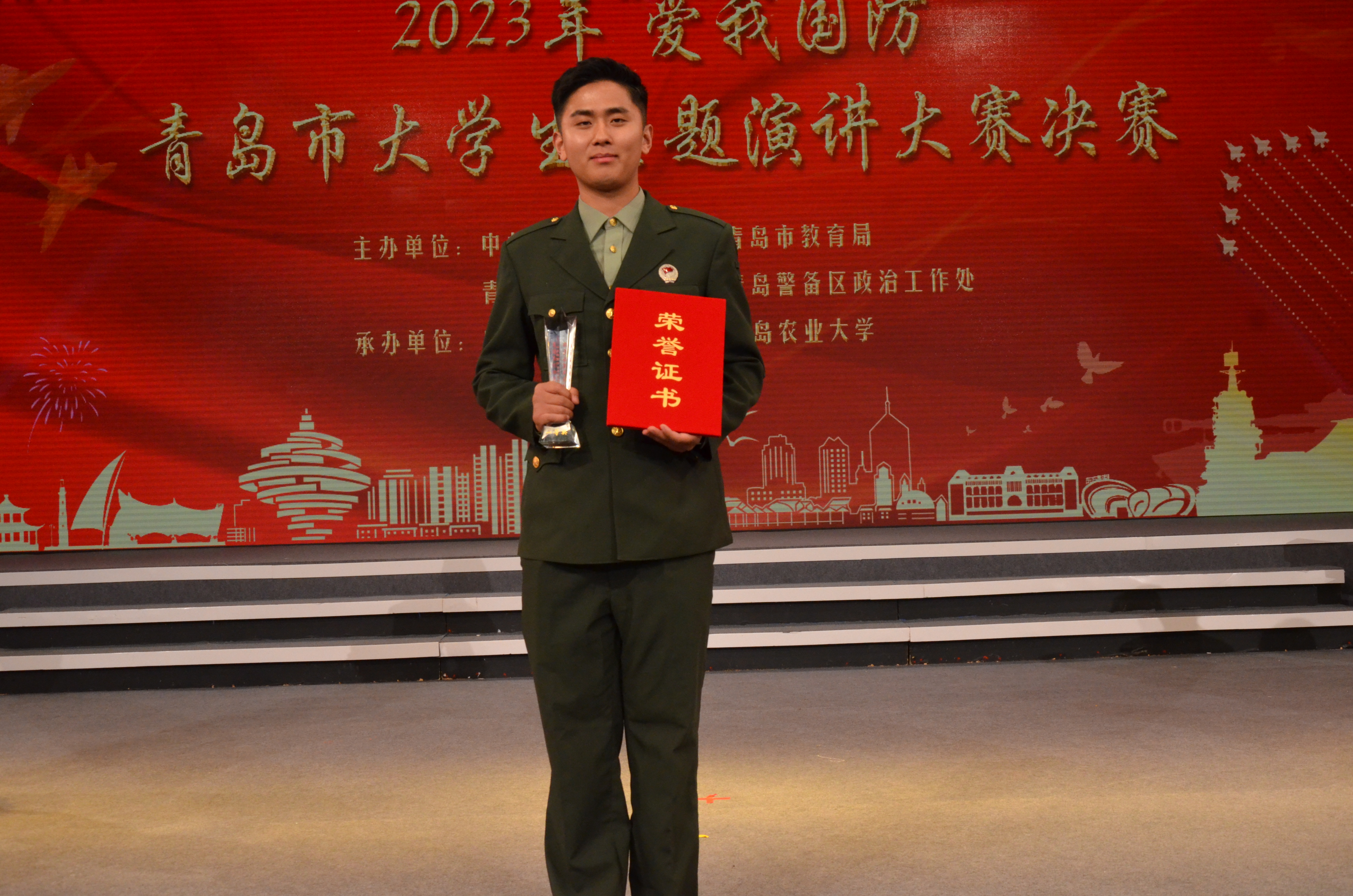 在刚刚落幕的2023年“爱我国防”青岛市大学生主题演讲大赛中,太阳成集团tyc9728周浩演讲作品《军人的模样在闪光》获一等奖,李玉喆演讲作品《桂花树下的国防故事》荣获二等奖。