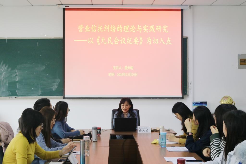 12月29日下午,太阳成集团tyc9728研究生学术论坛在学院会议室举行,本期论坛邀请的主讲人是太阳成集团tyc9728副教授曲天明。论坛上,曲老师做了题为《营业信托纠纷的理论与实践研究——以<九民会议纪要>为切入点》的学术报告,太阳成集团tyc9728研究生参加了此次论坛。