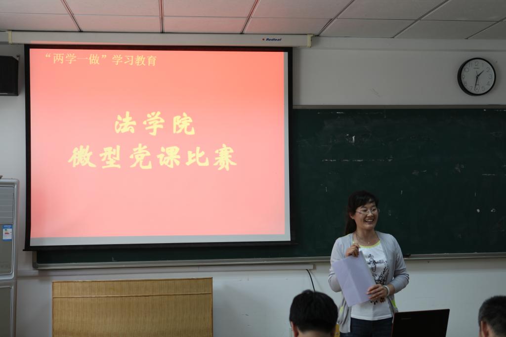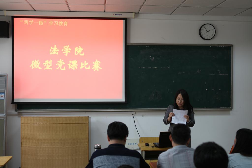 王卫国、李鑫、李亚妮、陈建云、陈为智、张亮、周丽、金英爱八位教师党员参加比赛。参赛教师结合岗位实际,以查找与学习身边的榜样、教师的岗位职责与底线、教职工党员的信念与理想等主题进行授课。王卫国讲述了社会工作党支部助人自助、回报社会的典型事迹;李鑫介绍了我院执教三十年的老教师的先进事迹;李亚妮介绍了她辅导单亲家庭青少年的经历与感想;陈建云以“党章在我心中”为主题进行思想汇报;陈为智讲述了他与学生在高邮湖路和泰州路老年日间照料中心陪伴、照料老年人的经历;张亮结合儒家责善理念,认为教师应当成为社会道德表率,应当勇于接受批评;周丽结合王尽美、邓恩铭等革命先驱的英雄事迹,讲述了在新形势下如何以信念照亮平凡的人生;金英爱表示要立足岗位,做道德的表率与学生的良师益友。参赛教师利用6分钟的时间,用通俗易懂的语言、生动鲜活的事例,形象展示学院党支部、广大教职工党员立足本职工作、教书育人、做合格党员的典型事迹。