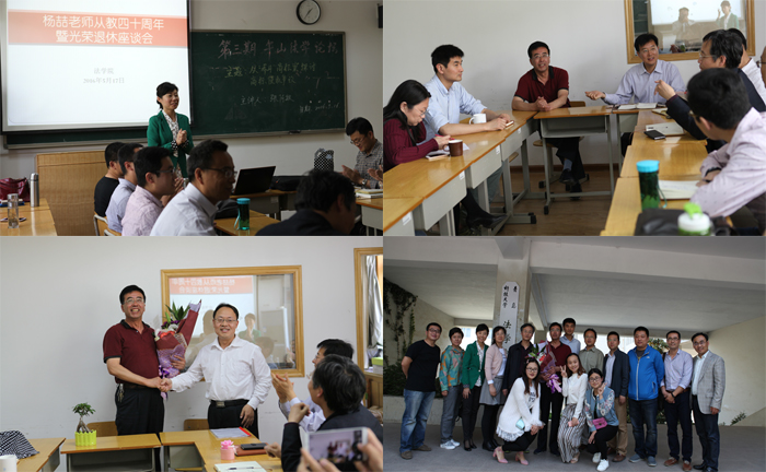 老师们深情地回顾了和杨喆老师共事的经历,并对杨喆老师的学术造诣,对学生的关爱,对工作的敬业,对青年教师的无私帮助和传帮带表示深深的敬佩。学生代表表达了对杨喆老师的感谢和依依不舍之情。