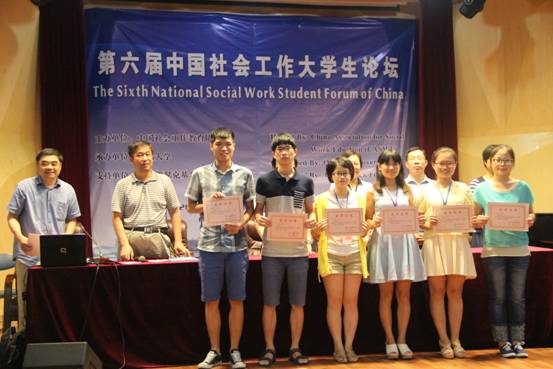 2014年8月5日至8月6日,我院社会工作系2012级的叶词润、2011级的王姸鑫和刘姝伶三位同学参加了在青岛召开的由中国社会工作教育协会主办的“第六届中国社会工作大学生论坛”,并分别提交了《老年社会福利视角下的东西部大学生赡养意识的比较分析》、《基于大学生社会适应能力提升的社会工作专业实践教学效果研究》和《社会工作专业大学生“分层递进式”实习模式的构建—以中国·太阳集团tyc9728社会工作专业实习为例》的学术论文。经过会前初选、大会发言、答辩交流和专家点评等环节,三位同学的论文从参赛的215篇论文中脱颖而出,分别获得本届论坛的二等奖、三等奖和入围奖。大会期间,叶词润同学还受邀担任第一分论坛的主持人,展示了太阳成集团tyc9728社工学子的良好风貌。