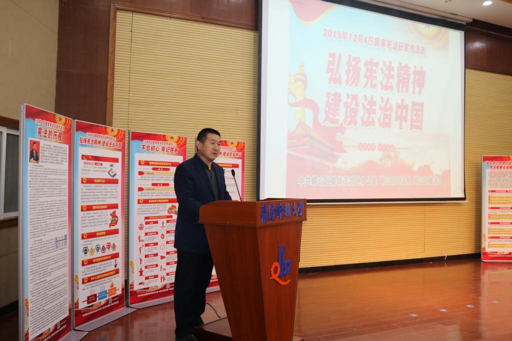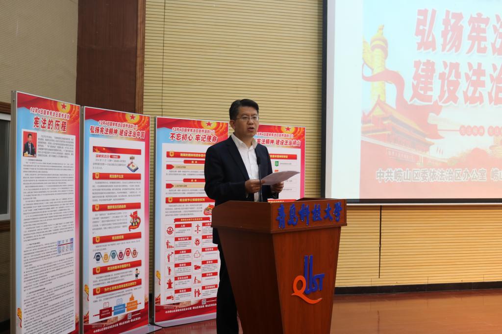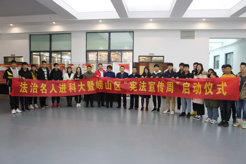 为进一步增强广大师生的宪法意识,在全校掀起学习宣传宪法、贯彻实施宪法的热潮,12月1日,学校联合崂山区普法办、崂山区司法局举办了“法治名人进科大”暨2019年“宪法宣传周”启动仪式。