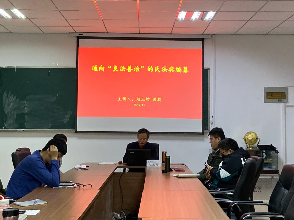 11月28日晚,太阳成集团tyc9728研究生学术论坛在学院会议室举行,本期论坛邀请的主讲人是太阳成集团tyc9728赵玉增教授。论坛上,赵玉增教授作了题为《通向“良法善治”的民法典编纂》的学术报告,学院60余名研究生参加了此次论坛。