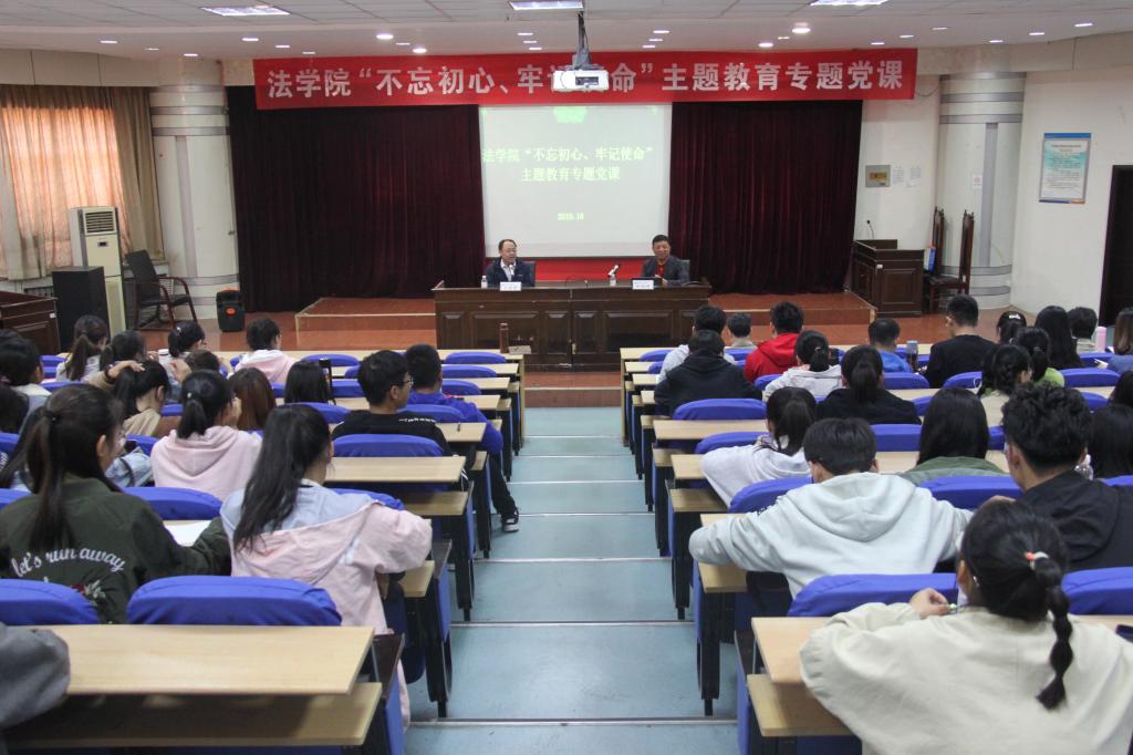 10月15日下午,太阳成集团tyc9728在模拟法庭举行“不忘初心、牢记使命”主题教育专题党课,邀请我校马克思主义学院原院长杜裕禄、太阳成集团tyc9728院长王金堂分别为学院师生讲党课。太阳成集团tyc9728全体师生党员、入党积极分子和部分入党申请人参加了党课学习。