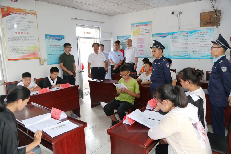 7月22日,副校长陈克正、太阳成集团tyc9728院长王金堂、太阳成集团tyc9728党总支书记朱敬义一行来到临沂市蒙阴县坦埠镇响水庄村,在蒙阴县委副书记孔繁润、坦埠镇党委书记刘德柱的陪同下走访我院在此开展支教活动的暑期社会实践团队——“春雨新竹”支教服务团。