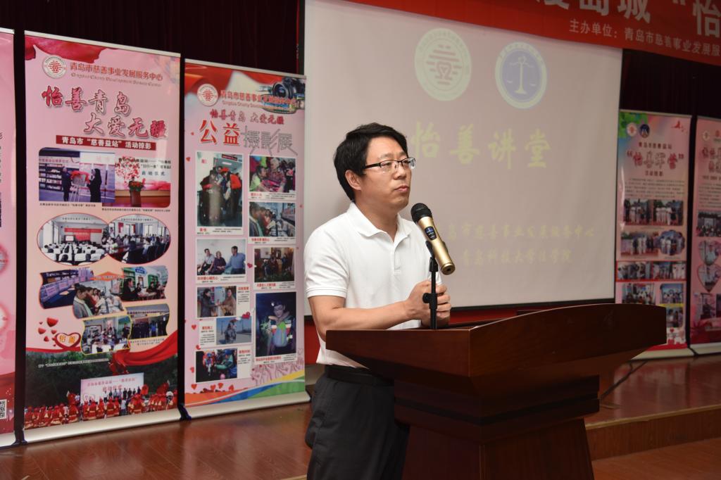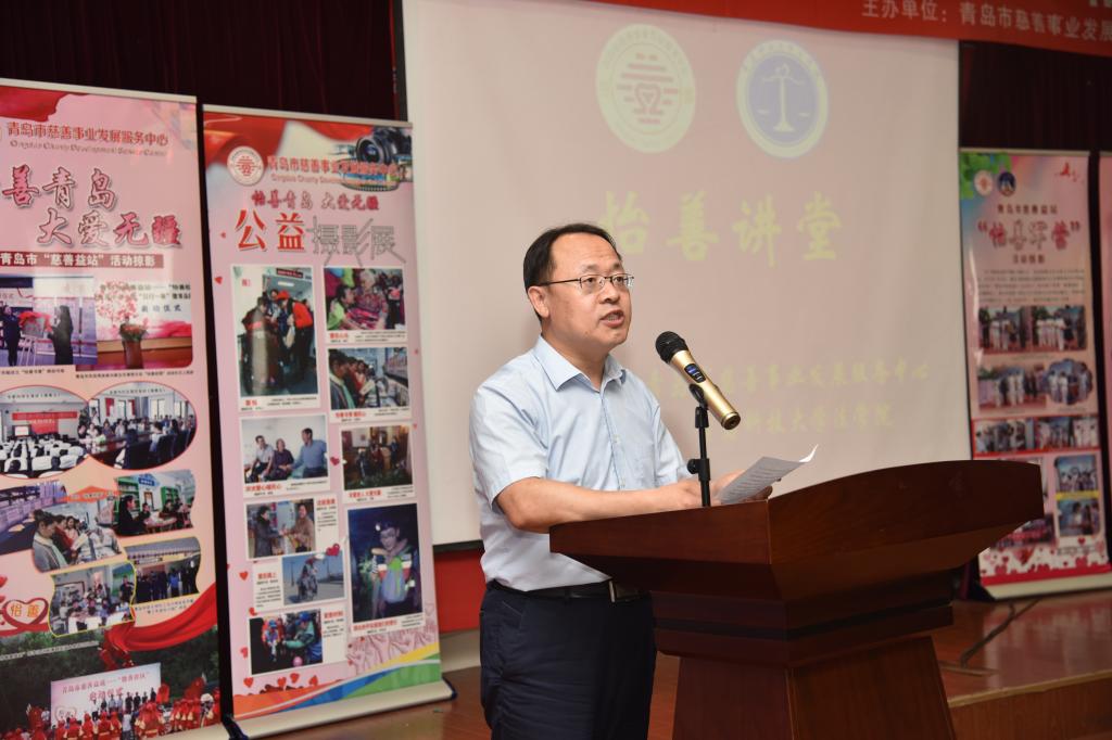 太阳成集团tyc9728院长王金堂为活动致辞。首先他介绍了太阳成集团tyc9728的基本情况以及近年来在志愿服务、专业实践等方面取得的成绩,并对青岛市慈善事业发展服务中心将“怡善讲堂”带到太阳成集团tyc9728表示热烈欢迎,希望校地继续加强合作,在校园中营造“人人慈善、快乐慈善”的良好氛围。