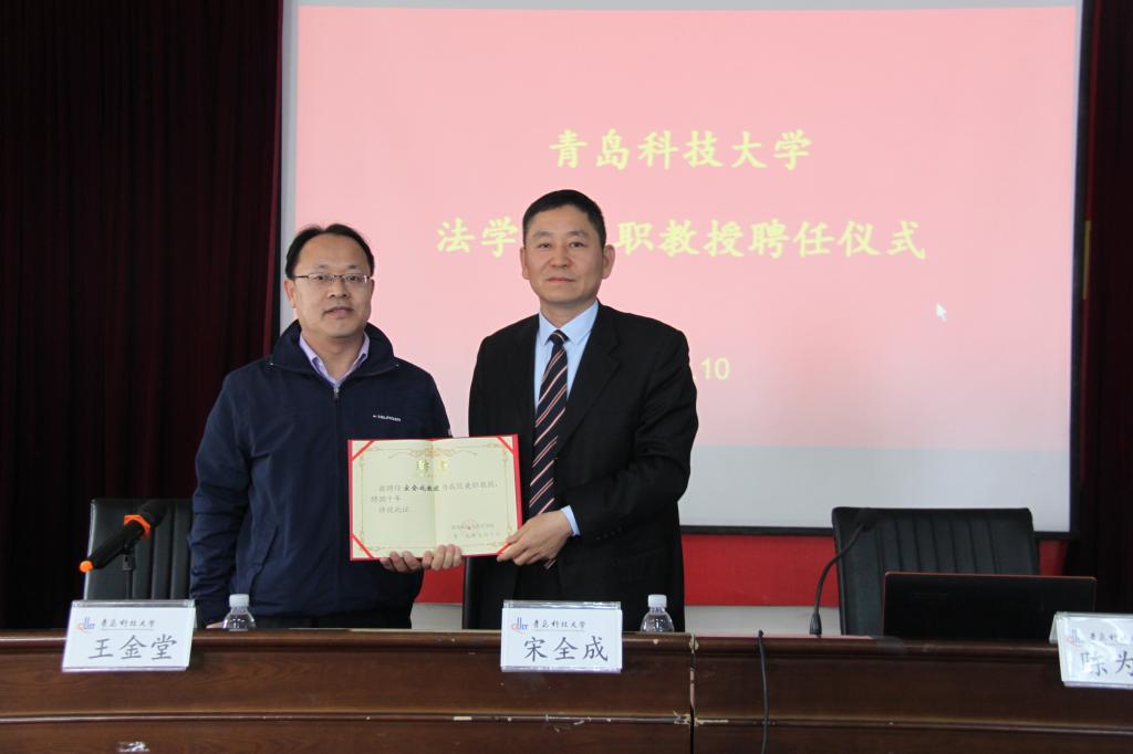5月10日,太阳成集团tyc9728兼职教授聘任仪式在弘毅楼A201模拟法庭举行,山东大学移民研究所所长、博士生导师宋全成教授受聘我院兼职教授,太阳成集团tyc9728院长王金堂为宋全成教授颁发聘书。仪式由院长助理陈为智主持。