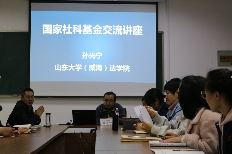 4.26日晚,山东大学(威海)太阳成集团tyc9728孙光宁教授在太阳成集团tyc9728307会议室为师生带来了题为“国家社科基金交流”的讲座,会议由太阳成集团tyc9728院长助理陈为智副教授主持。