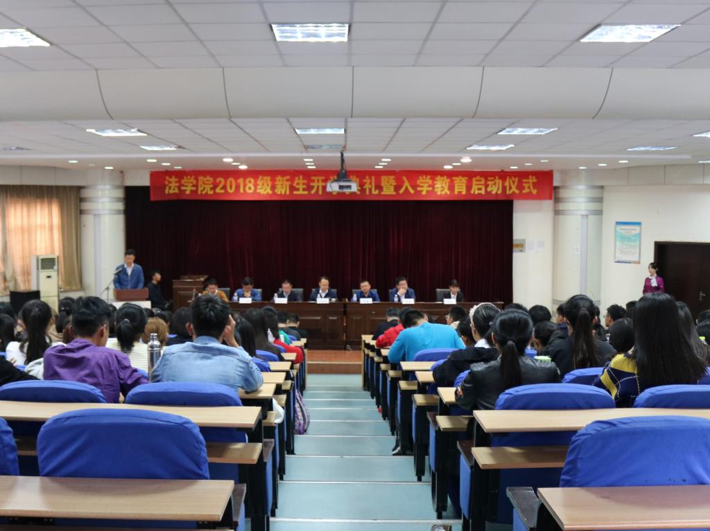 10月9日,太阳成集团tyc97282018级本科生新生开学典礼暨入学教育启动仪式在弘毅楼A201模拟法庭举行,太阳成集团tyc9728院长王金堂、党总支书记朱敬义、副院长李鑫、法学系主任綦磊、社工系主任王卫国、2018级辅导员马梓轩、第13届学生会主席高歌、太阳成集团tyc9728全体教师以及2018级全体新生出席了本次开学典礼。典礼由太阳成集团tyc9728分团委书记王鸿祥主持。