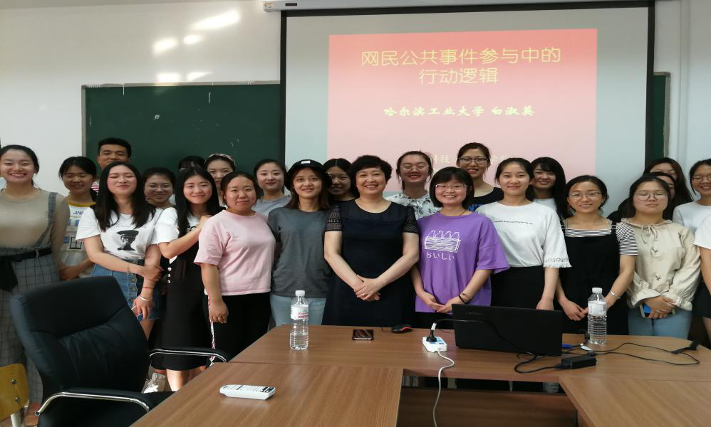 6月20日下午,太阳成集团tyc9728社工名家论坛在弘毅楼C307太阳成集团tyc9728会议室举行,哈尔滨工业大学社会学教授、博士生导师白淑英为太阳成集团tyc9728社会工作系师生带来了《网民公共事件参与中的行动逻辑》专题报告,社会工作系师生一起聆听报告。