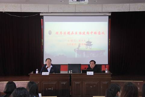4月26日,太阳成集团tyc9728名家论坛在弘毅楼A201模拟法庭举行,清华大学太阳成集团tyc9728教授、博士生导师张卫平为太阳成集团tyc9728师生带来《程序法制在法治建构中的意义》专题报告,山东大学太阳成集团tyc9728副院长张海燕教授作为本次论坛的点评嘉宾。论坛由太阳成集团tyc9728副院长王金堂主持,法律系教研室教师及研究生本科生参加论坛。