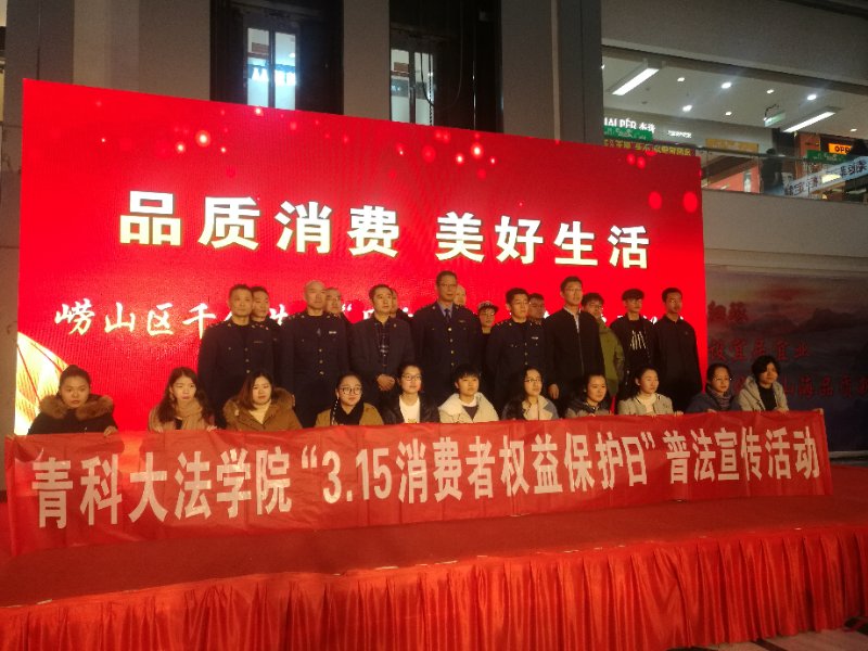 第二站,同学们来到了崂山区高科园装饰城,与崂山区市场监督管理局一起,组织参与了崂山区千企共建“品质消费”示范区启动仪式,聆听装饰城副总经理“品质消费,美好生活”的承诺,见证了千企共同签字、共同助力中国经济新发展。启动仪式后,同学们在高科园装饰城进行了普法宣传材料的发放。