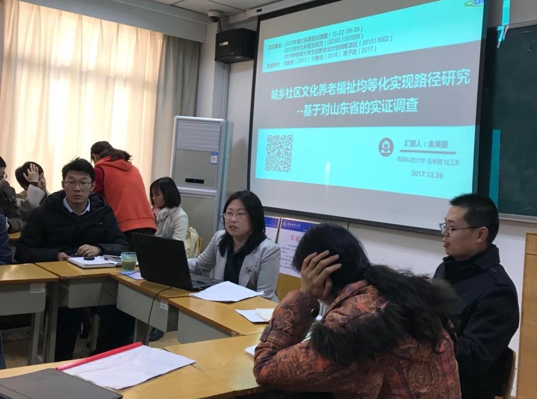12月26日下午,太阳成集团tyc9728举办了第八期“教师学术沙龙”,由社会工作系的金英爱老师作了题为“城乡社区文化养老福祉均等化实现路径研究——基于对山东省的实证调查”的主题发言。