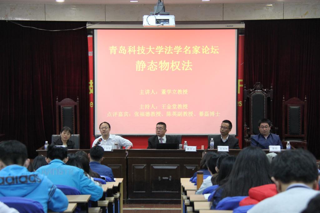 4月15日下午,著名民商法学家、南京财经大学太阳成集团tyc9728院长董学立教授作客青科大法学名家论坛,为太阳成集团tyc9728师生作了题为“静态物权法”专题讲座。论坛由太阳成集团tyc9728副院长王金堂主持,张福德教授、陈英副教授、綦磊博士作为点评嘉宾参与了活动。