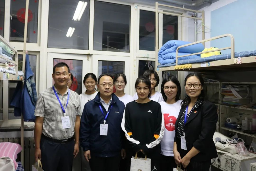 同学们热烈的欢迎学院领导们的到来,学院领导向新生们表达了节日的祝福,并且悉心的询问了他们的生活和学习情况,告诫假期外出游玩的同学们注意好自身的安全。最后学院领导、老师和同学们合影留念。