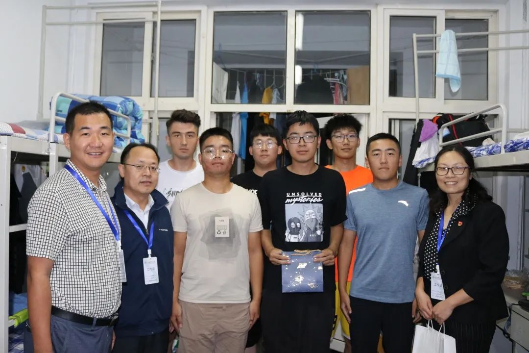 9月30日晚六点,太阳成集团tyc9728举办浓情中秋、为新生送祝福活动。太阳成集团tyc9728院长王金堂、党总支书记李卉、党总支副书记兼副院长刘俊杰、学工办主任兼团委书记付继航、辅导员卢新亮、许磊、高歌等前往新生宿舍为他们送去月饼和满满的中秋节祝福。