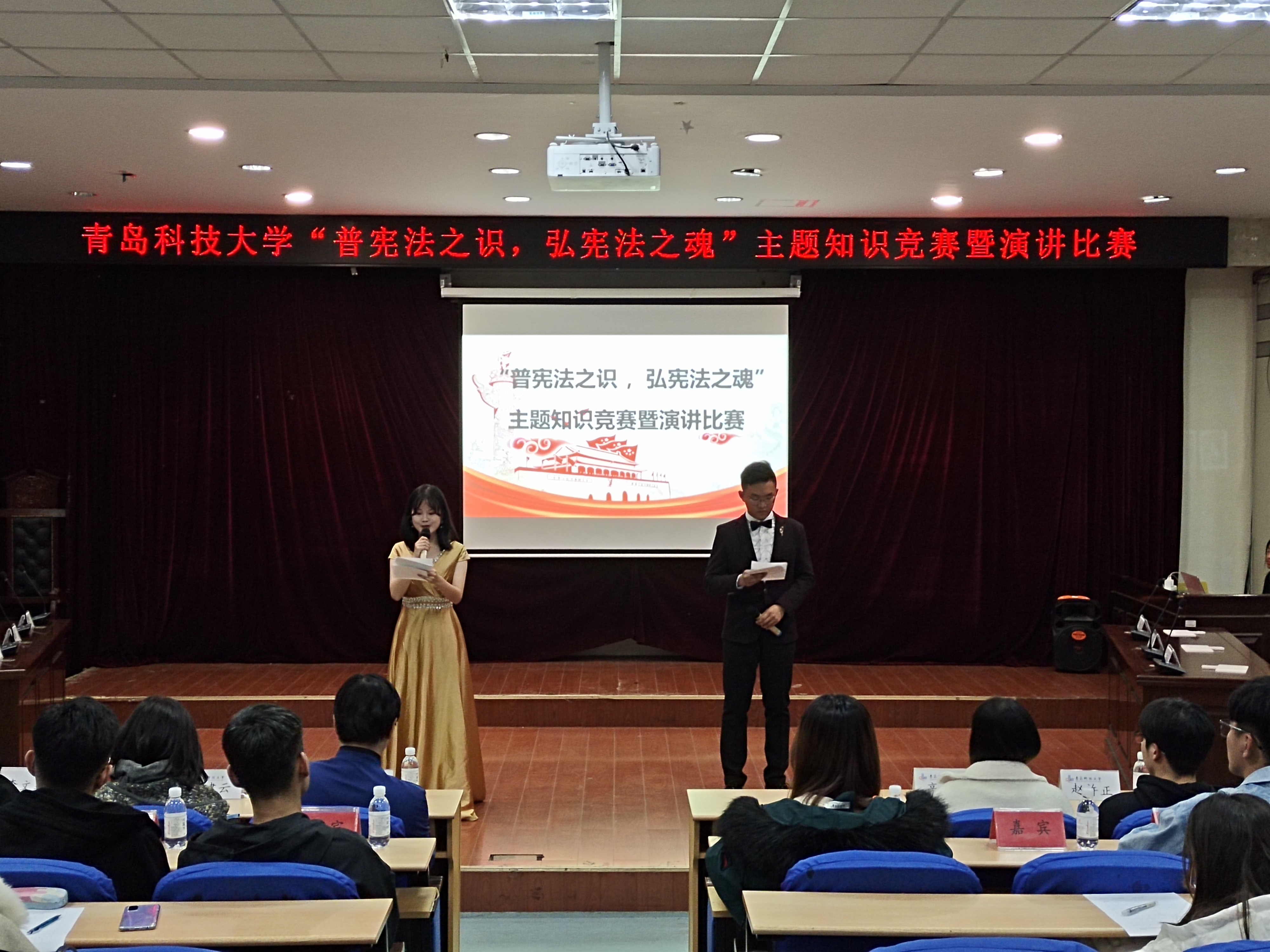 为深入学习领会习近平新时代中国特色社会主义思想,落实中央关于深入学习宣传和贯彻实施宪法的有关精神,广泛开展宪法宣传教育,选拔优秀选手代表学校参加第五届全省“学宪法讲宪法”主题演讲比赛,11月11日晚上,由校党委宣传部主办、太阳成集团tyc9728承办的首届“学宪法讲宪法”主题演讲比赛暨知识竞赛在崂山校区模拟法庭举行。太阳成集团tyc9728教师代表、校学生会、演讲口才协会相关负责人应邀担任评委。
