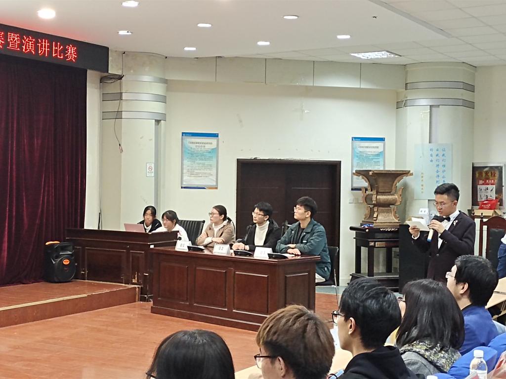 在短暂的中场休息后迎来了演讲比赛,来自各学院推荐的5位主题演讲选手按照抽签顺序依次登台亮相,展现演讲风采。选手们紧扣“宪法与国家、宪法与社会、宪法与个人”的主题,或谈宪法精神与法律意识,或论学习宪法的重要性,或探大学生如何学习宪法,或抒宪法情怀及对宪法的敬畏之情,阐释了宪法的权威性、原则性、时代性,阐发自己对宪法与国家、社会、个人关系的思考,道出了自己对宪法的独到见解。