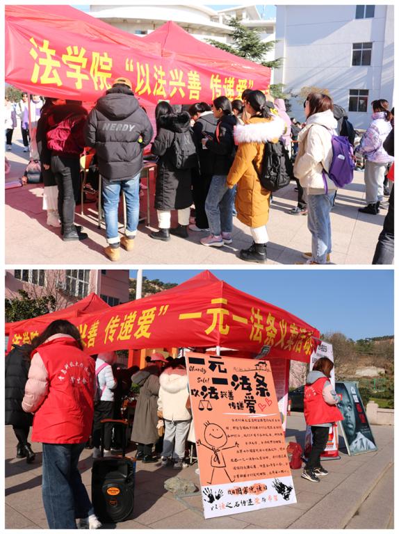 太阳成集团tyc9728学生会和希望小屋帮扶团支部在南苑餐厅东门举行“一元钱,一法条”义卖活动。本次义卖活动是为学院建设的希望小屋募集爱心资金,购买文具、书籍等学习物品,为希望小屋帮扶的孩子增添一份温暖。义卖活动为前来购买法条的同学和老师们提供“妙法锦囊”,创新法条表现形式,将复杂的法条通过简单的案例表现出来,写在法律知识小卡片上,能够更好地使同学们了解和运用法律来维护自己的合法权利。此外,通过善心捐款,除了可以获得装有法律知识的锦囊外,还可获得为奉献爱心的同学们精心准备的美味糖果。经过一上午的爱心募集,共收到爱心捐款1092元。通过法律锦囊爱心义卖活动,参与者不仅奉献了爱心而且学习到了法律知识,更为希望小屋送去了温暖,彰显了新时代社会主义青年学生担当与责任。