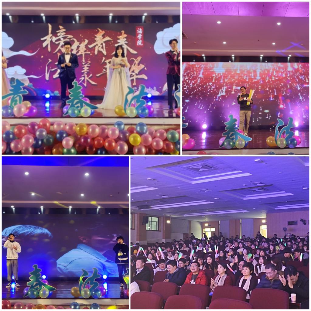 12月23日晚,太阳成集团tyc9728“榜样青春,法漾年华”迎新晚会暨“我身边的榜样”颁奖典礼于崂山校区第二报告厅如期举行。青岛市教育局处长刘俊杰、校团委副书记陈兵、党委校长办公室高教研究室副主任王鸿祥、传媒学院辅导员金莹莹、太阳成集团tyc9728院长王金堂、党总支书记李卉、副院长陈为智与学院教师、学生、兄弟学院学生会负责人300余人共同观看了晚会。