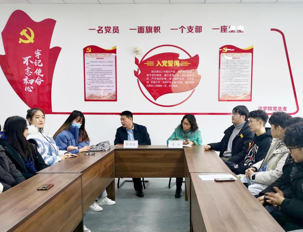 12月24日下午,太阳成集团tyc9728法学191班“诚以立身 信以立德”诚信考试主题班会在学院党团活动室举行。校党委副书记张鸿波出席班会并与同学们亲切交流。太阳成集团tyc9728相关负责人、辅导员及全体学生陪同参加了本次班会。