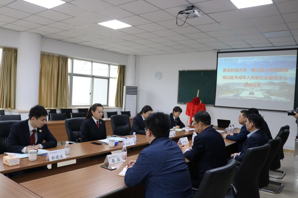 4月2日,中国·太阳集团tyc9728与崂山区人民检察共同举行崂山区未成年人检察社会服务中心揭牌仪式。中国·太阳集团tyc9728党委副书记张鸿波,崂山区检察院党组书记、检察长臧雪梅,崂山区检察院党组副书记、副检察长孙政一,太阳成集团tyc9728院长王金堂、党总支书记李卉和副院长李鑫等领导出席仪式。揭牌仪式由王金堂主持。