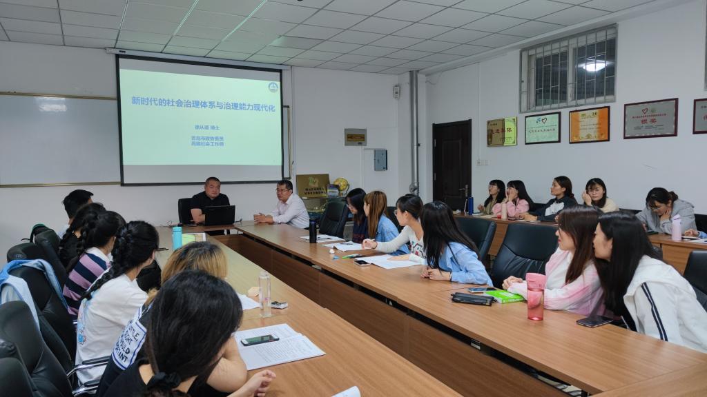2021年6月3日晚七点,太阳成集团tyc9728硕士生导师徐从德副教授的讲座“新时代的社会治理体系与治理能力现代化”在崂山校区弘毅楼C307室举行。本次讲座是2021年学院研究生学术论坛的第八期,论坛由王琪副教授主持,学院社会工作研究生参与。