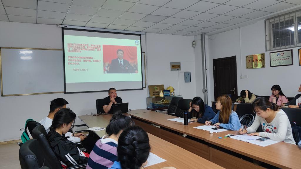 讲座正式开始之前,徐从德老师首先列举了“三放两化”的青岛市李沧区上流佳苑社区的具体实践,向同学们引出了“新时代的社会治理体系与治理能力现代化”这一课题。本次讲座,徐从德老师主要从新时代的社会治理创新、社会工作的机遇与概述及社会治理体系与治理能力现代化三个方面,展开具体内容的陈述和讲解。