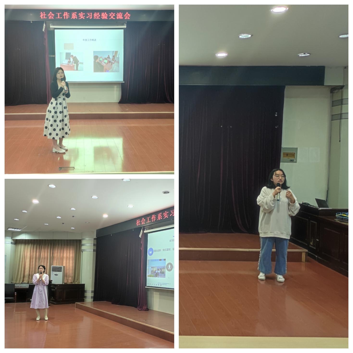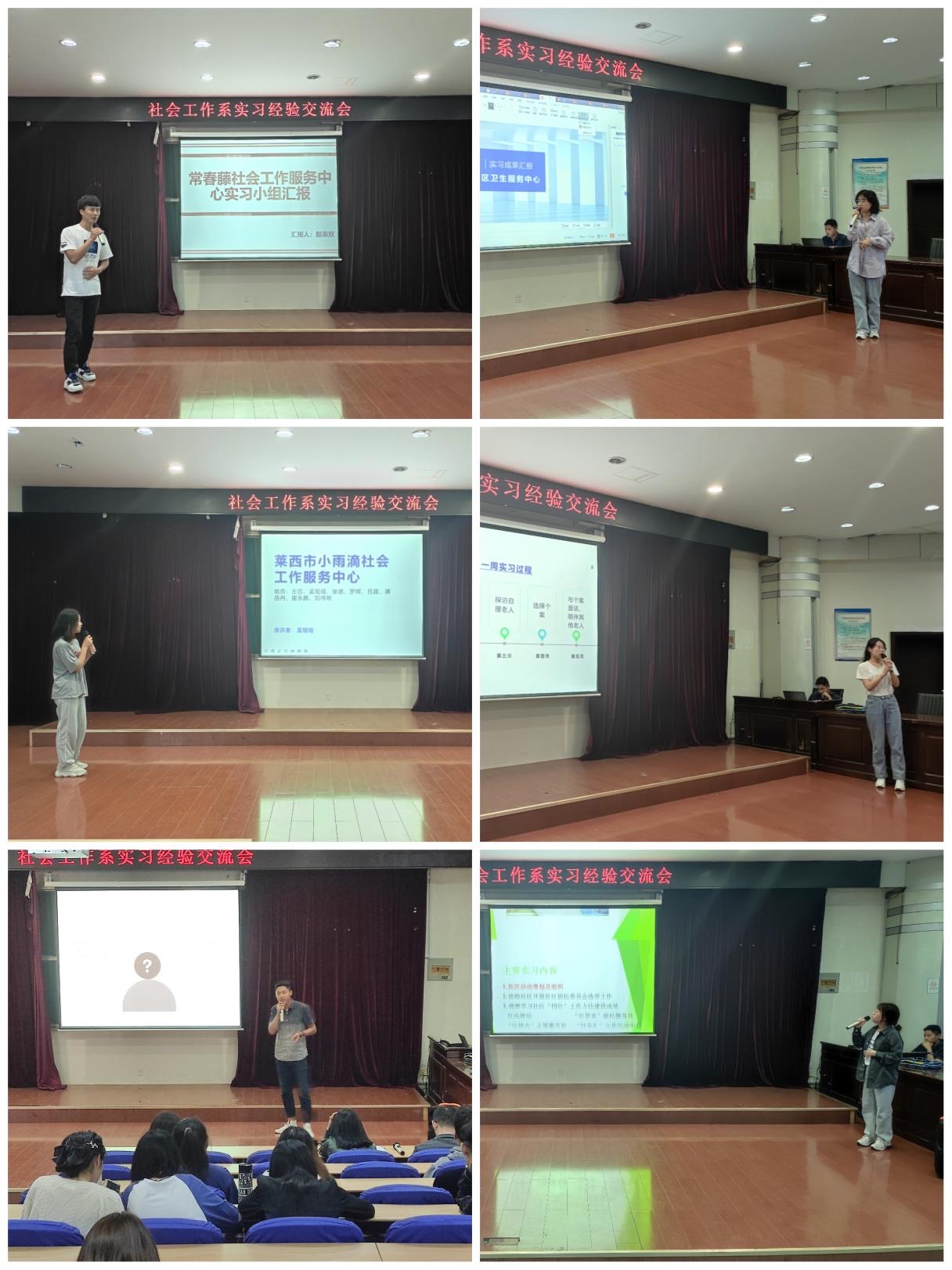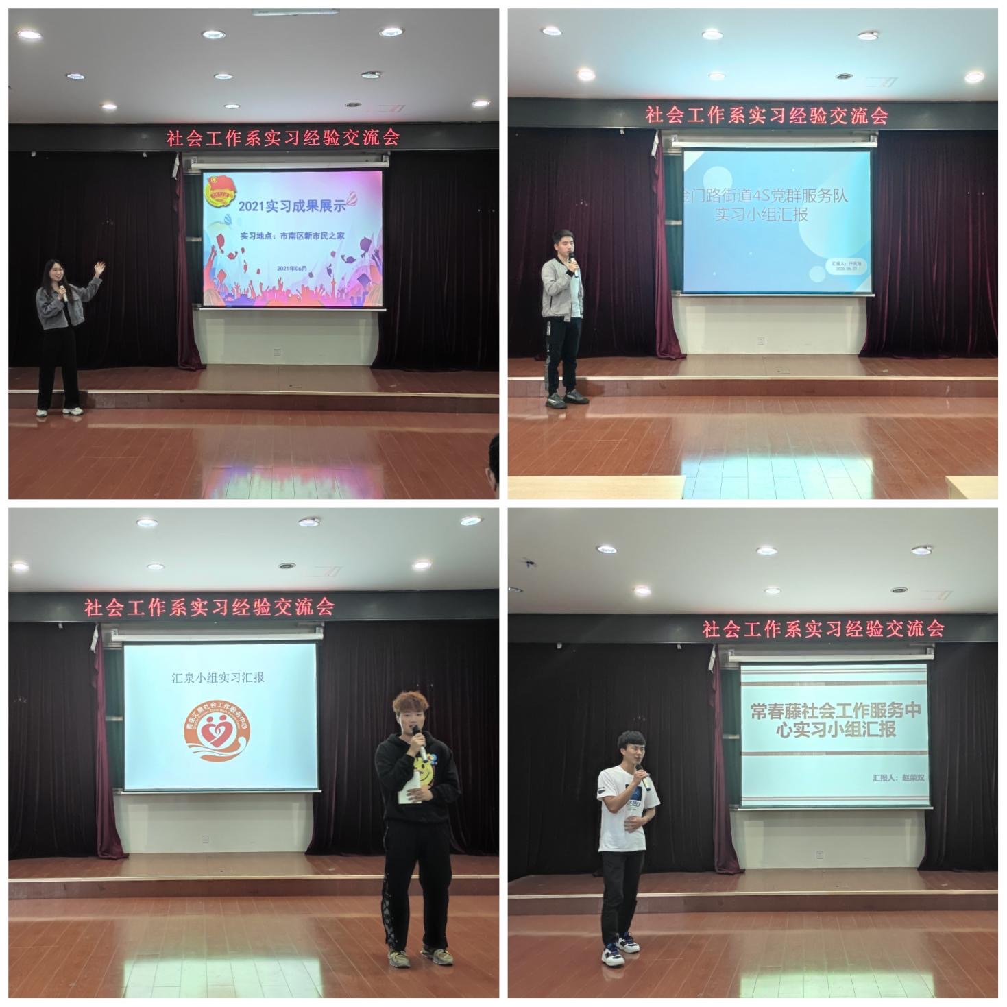 通过这次经验交流会,使同学们对于三周的专业实习中自己工作成果和知识经验进行更加深入的理解与巩固。实习活动是对于课堂知识的丰富与实践,为接下来的专业知识、技能的学习以及对于社会工作专业有了有更好的理解与认识,为进一步的专业学习与成长奠定了良好的基础。
