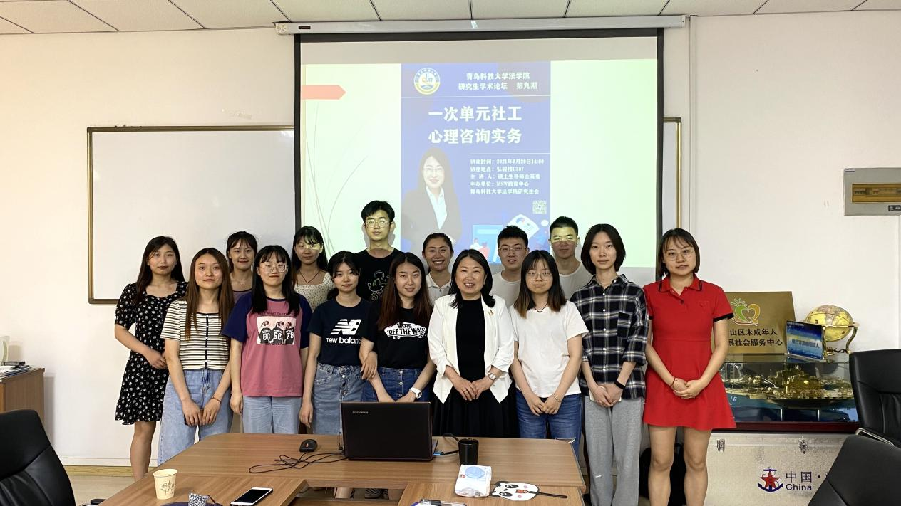2021年6月20日下午两点,太阳成集团tyc9728硕士生导师金英爱副教授的讲座“一次单元社工/心理咨询实务”在崂山校区弘毅楼C307室举行。本次讲座是2021年学院研究生学术论坛的第九期,学院社会工作研究生参与。