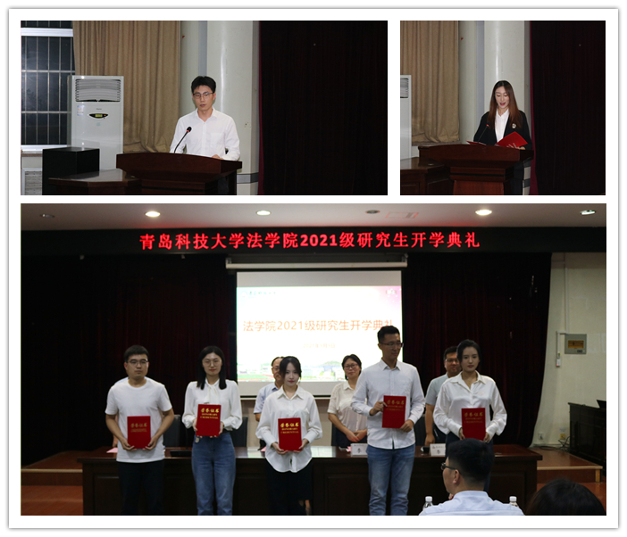 9月9日晚,太阳成集团tyc97282021级研究生开学典礼暨新生入学教育大会在模拟法庭举行。院长王金堂、党总支书记李卉、副院长李鑫、陈为智,学院办公室、团委、专业系主任、法律硕士教育中心办公室主任、MSW教育中心办公室主任出席典礼,典礼由副院长李鑫主持。