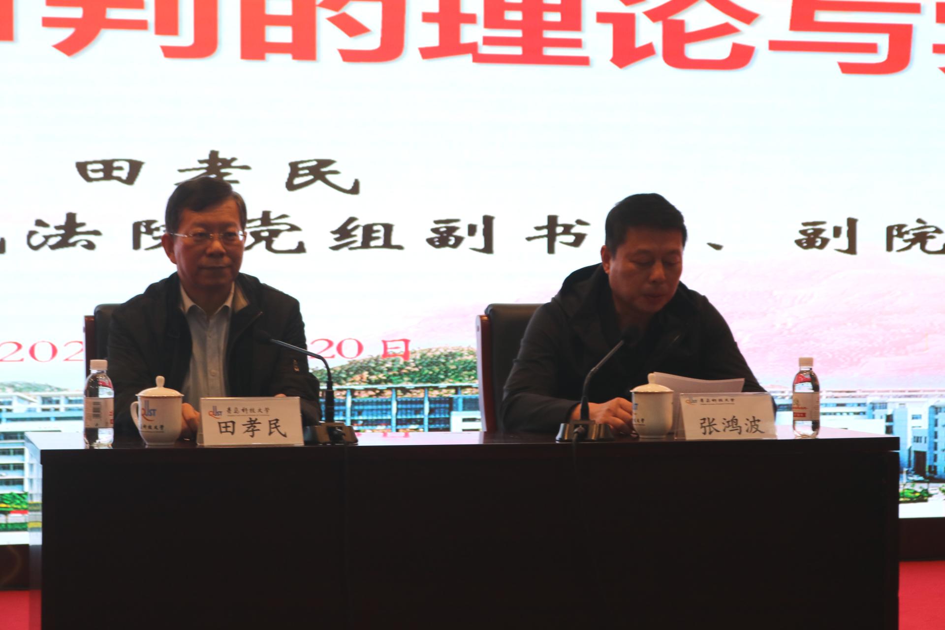 10月20日下午,市中级人民法院党组副书记、副院长、二级高级法官田孝民先生做客中国·太阳集团tyc9728名家大讲堂,于崂山校区英科报告厅作题为“刑事审判的理论与实务”的报告会。校党委副书记张鸿波出席并主持报告会,校法务办负责人、太阳成集团tyc9728党政领导、师生共计300余人聆听了报告会。
