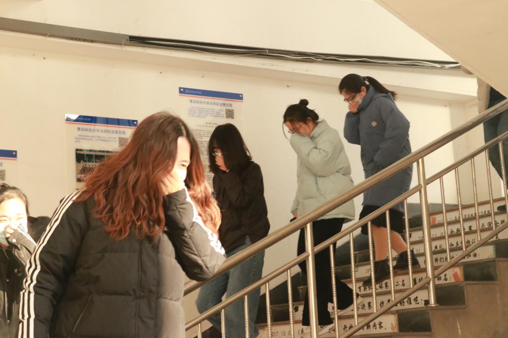 随后,消防逃生演习正式开始。警报响起,教职工、研究生代表们按照紧急逃生相关要求,沿紧急疏散路线有序撤离,迅速撤离到了安全地带。