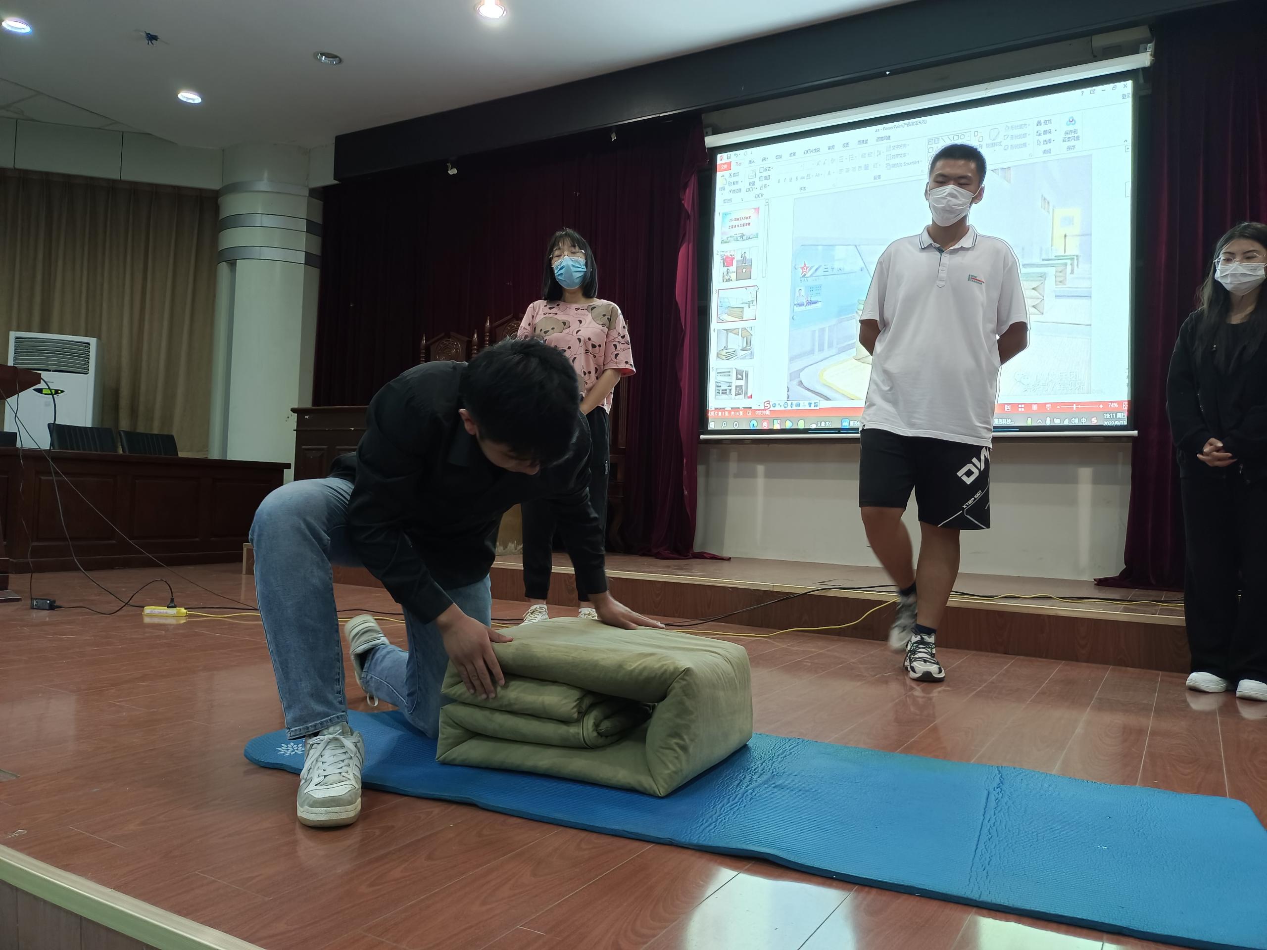 为加强宿舍内务整理,营造更加整洁、文明的宿舍环境,展现太阳成集团tyc9728全体2022级新同学积极向上的精神风貌,9月11日,太阳成集团tyc9728在弘毅楼A201开展新生入学教育之宿舍内务整理篇。