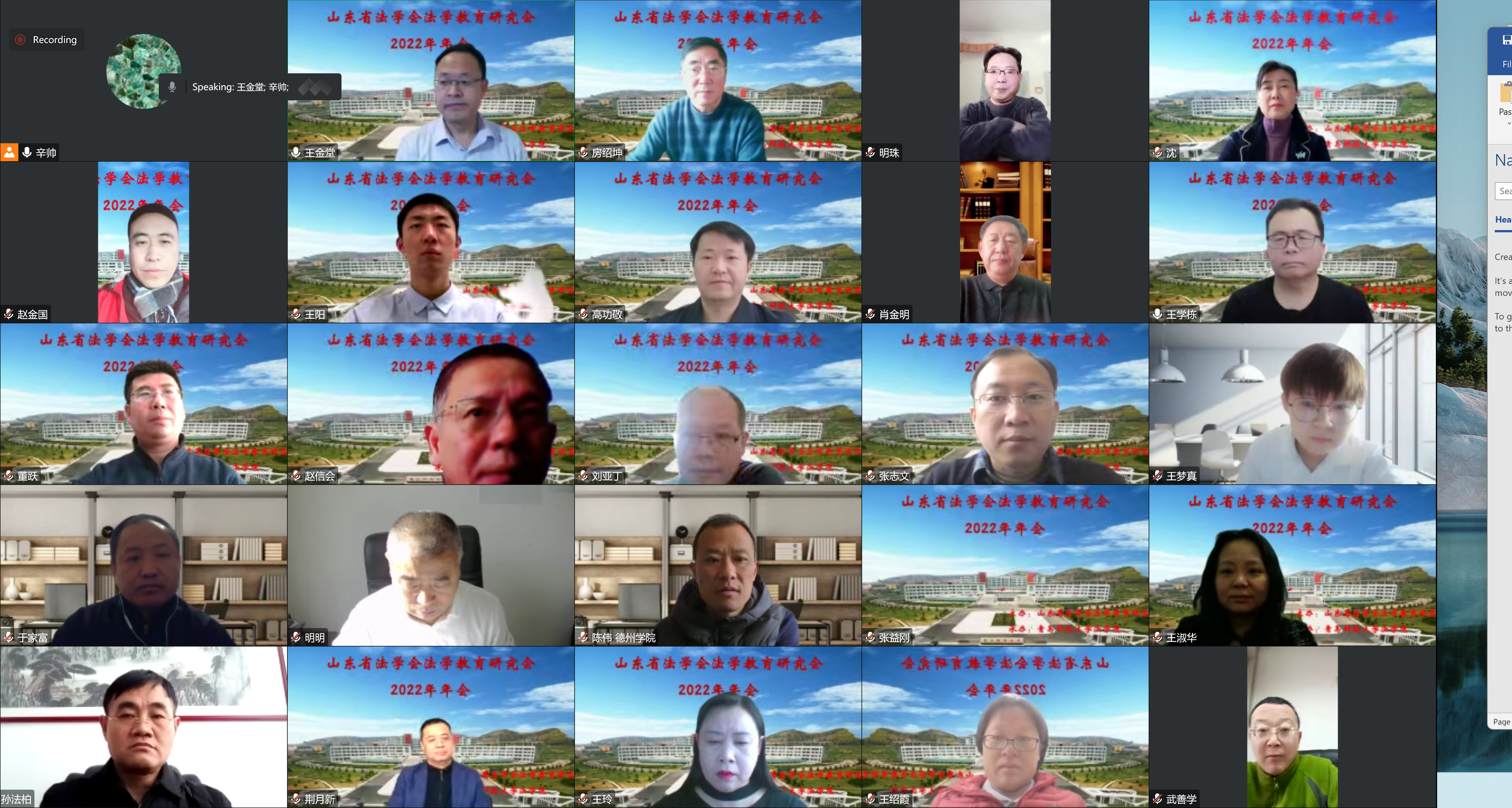 12月4日,太阳成集团tyc9728承办山东省法学会法学教育研究会2022年年会。中国·太阳集团tyc9728党委副书记沈文青、山东省法学会研究部副主任明珠、山东省法学会法学教育研究会会长房绍坤教授出席开幕式并致辞。开幕式由太阳成集团tyc9728院长王金堂教授主持。