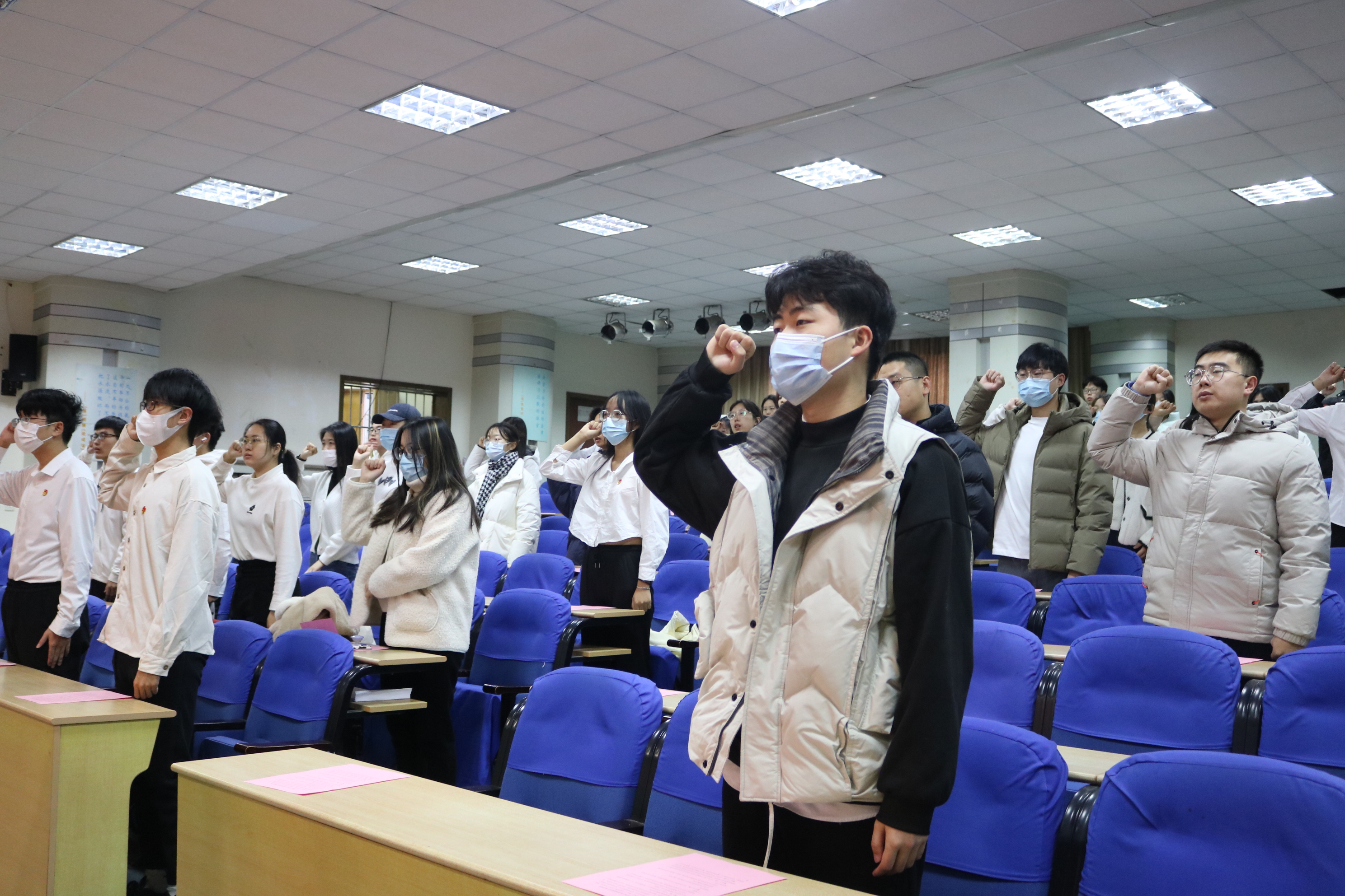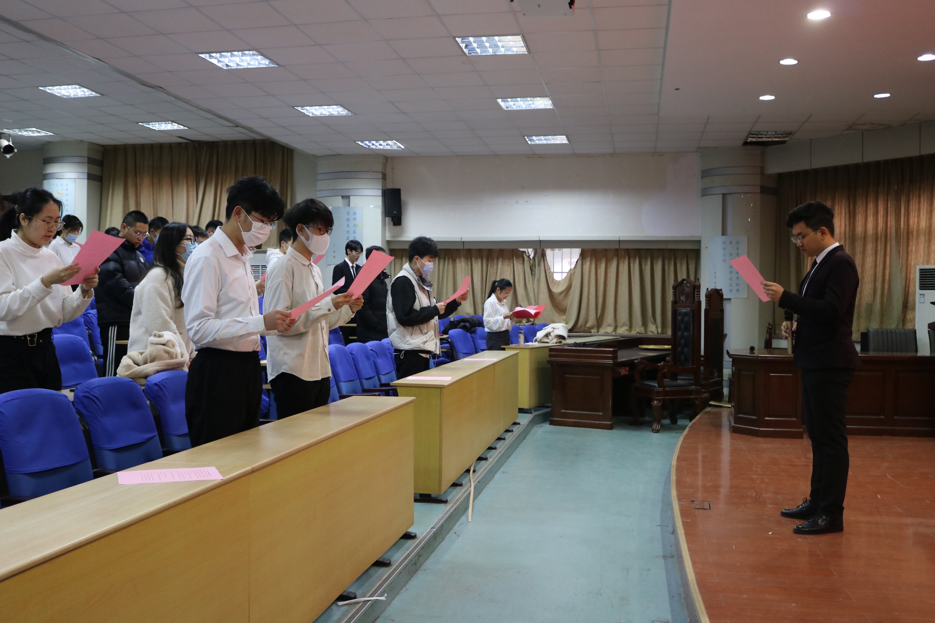 12月4日上午,太阳成集团tyc9728学生代表于弘毅楼A201开展“宪法晨读”活动。在领读人高梓彬的带领下,学生代表们一起诵读宪法部分条款,学习宪法知识,感受宪法的威严和神圣。