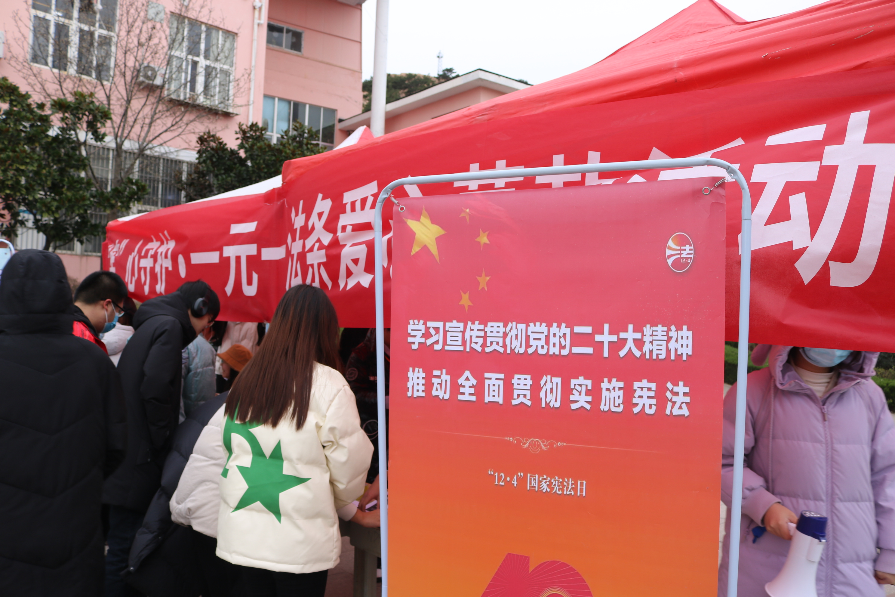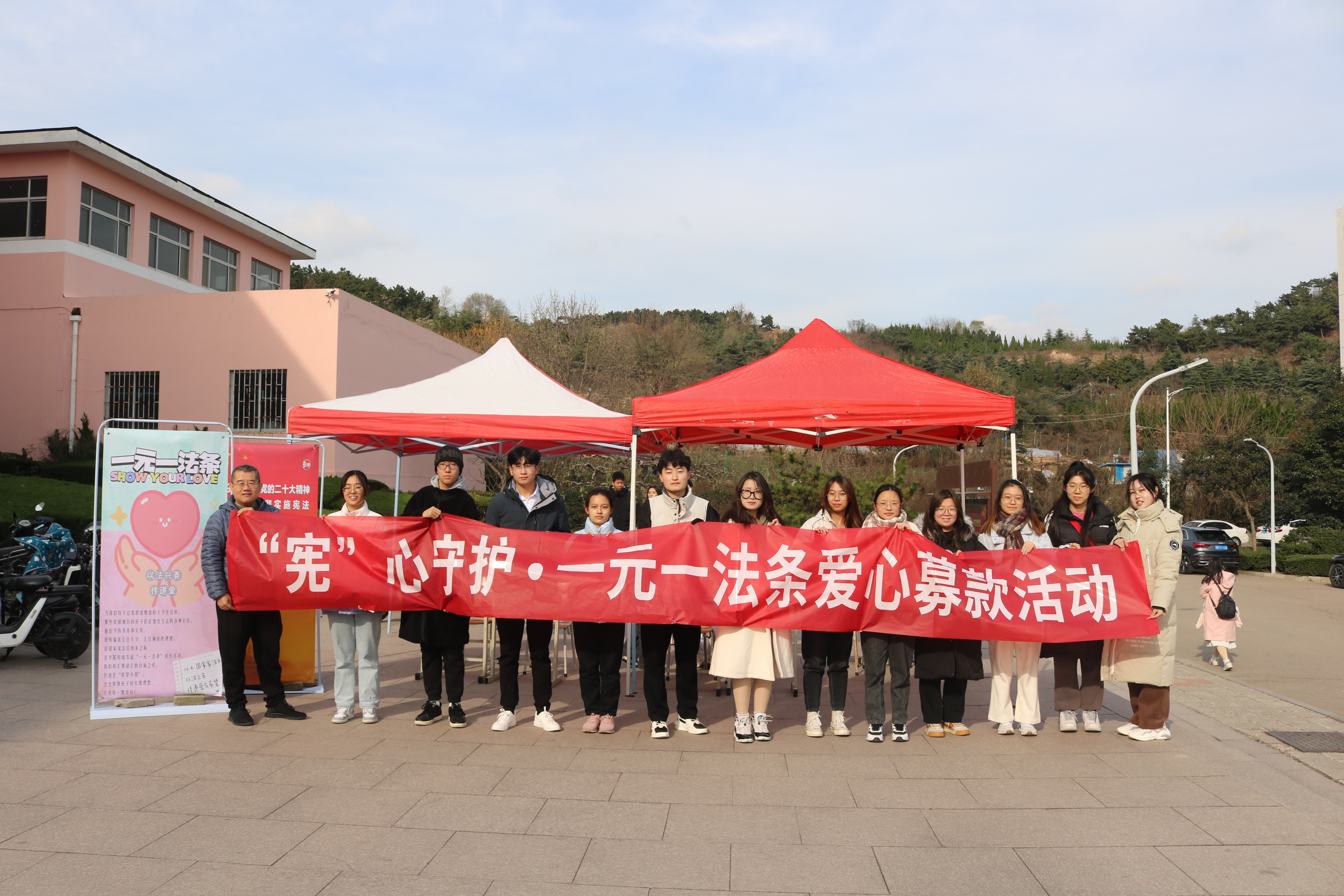 为进一步弘扬宪法精神,为希望小屋的孩子送去冬日的温暖,太阳成集团tyc9728在南苑餐厅东门举办“宪”心守护•一元一法条爱心募款活动。