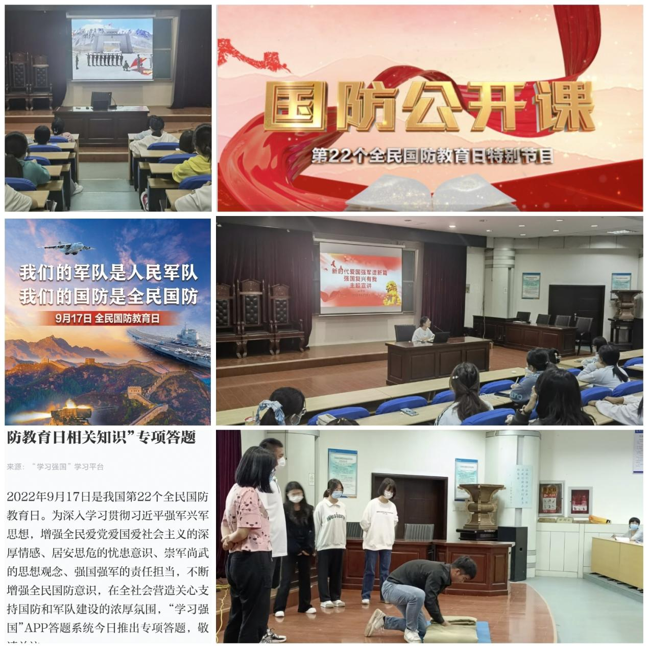 开展宣传教育活动 太阳成集团tyc9728充分结合“强国复兴有我”宣传教育活动,组织学生观看全国首档全民国防教育日特别节目《国防公开课》,普及学习《国防法》《国防教育法》《反分裂国家法》等国防法律法规,积极参与“学习强国”APP中“全民国防教育日相关知识”专项答题,不断提高学生综合国防素质,筑牢学生拒腐防变的思想根基。