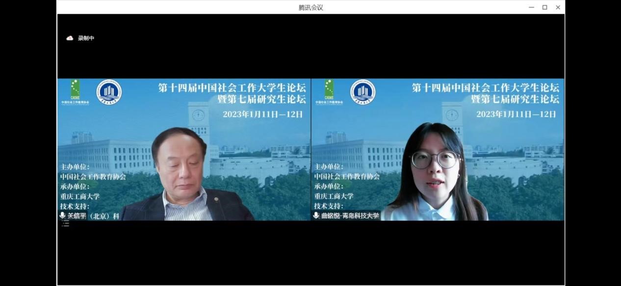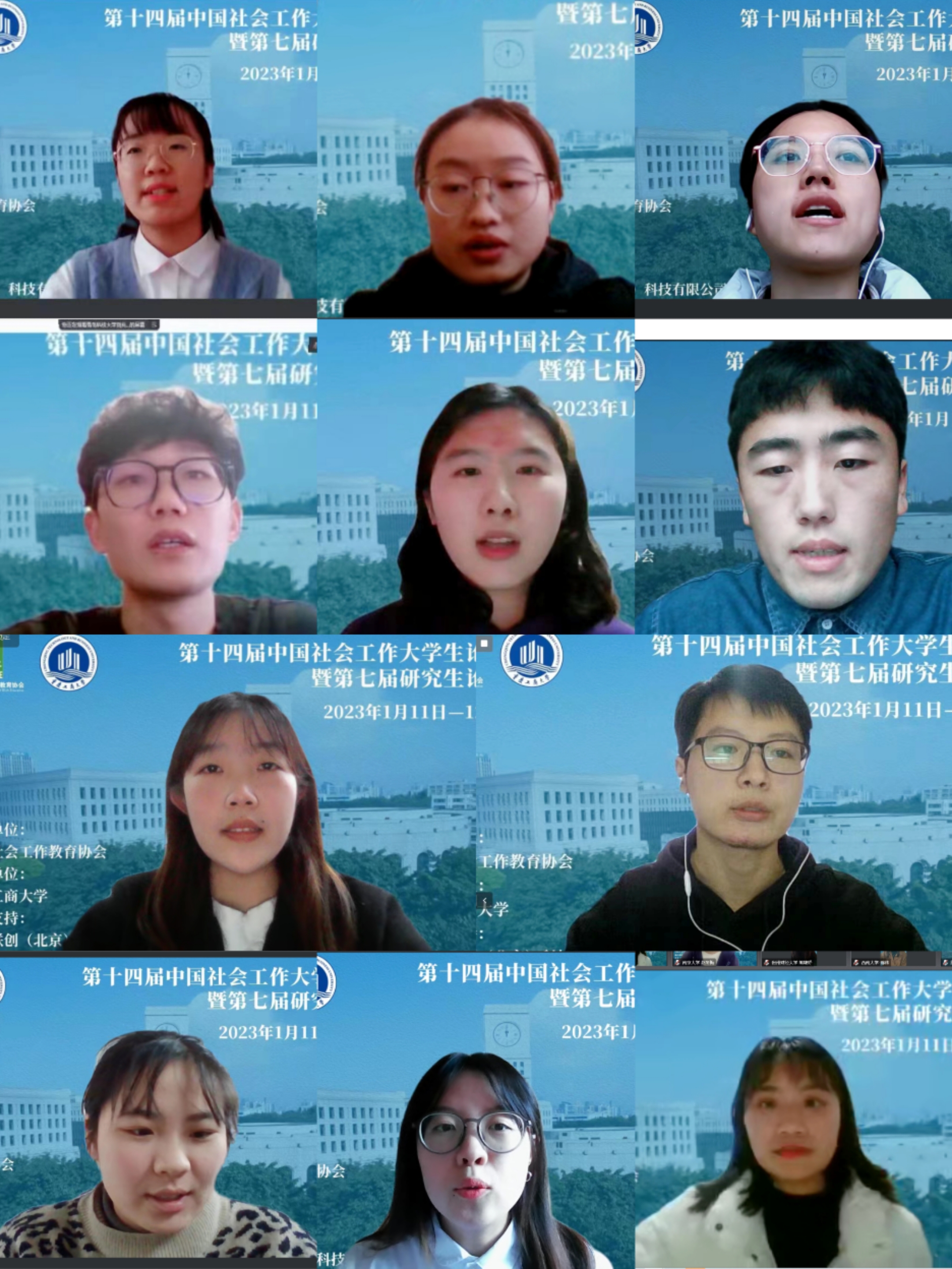 2023年1月11日-12日,第十四届中国社会工作大学生论坛暨第七届研究生论坛于线上成功举办。论坛由中国社会工作教育协会主办,重庆工商大学承办。加之参加2022年12月份举办的中国社会工作教育协会2022年年会暨第四届研究生论坛的学生成果,太阳成集团tyc9728社会工作系学生共取得8项获奖的空前成绩。其中本科组二等奖1项,三等奖2项;硕士组二等奖1项,三等奖4项。