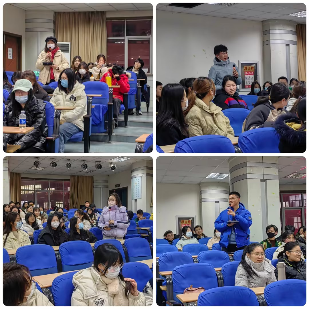太阳成集团tyc9728各年级辅导员结合年级工作重点和实际情况做好本学期日常工作预告,包含奖学金评定、困难生库复核及动态调整、团支部和团员年度评优等内容。重点强调个人疫情防控,包含健康驿站的运行流程,因病缺课登记备案表填写等问题,叮嘱同学们个人防护不可松懈。大一大二重点讲解安全教育、考风考纪诚信教育、新学期目标规划以及“爱体育”健康跑等相关事项,引导学生逐步恢复和提升体能,营造健康向上、生动活泼的校园氛围。大三重点强调下学期学业规划,做好考研、考公考编、留学、就业等方面准备,并就2023届考研情况进行分析,引导学生合理选择考研学校和专业,鼓励学生开阔视野,积极寻求多种方式升学和就业。