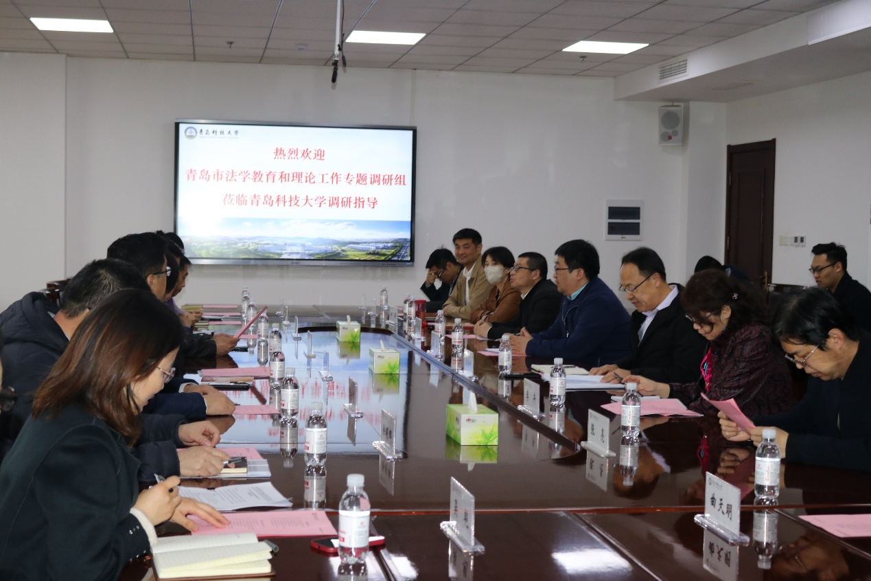 为深入贯彻落实中共中央办公厅、国务院办公厅印发的《关于加强新时代法学教育和法学理论研究的意见》(以下简称《意见》),研究谋划青岛市加强法学教育和法学理论研究工作,3月22日,青岛市法学教育和法学理论工作专题调研组赴太阳成集团tyc9728交流、调研。市法学会专职副会长兼秘书长殷静、市司法局一级调研员蔡余、太阳成集团tyc9728院长王金堂、太阳成集团tyc9728党总支书记李卉,以及来自青岛市委全面依法治市委员会办公室、市司法局、市教育局、市法学会、太阳成集团tyc9728法学专业的领导、教师、学生出席活动。