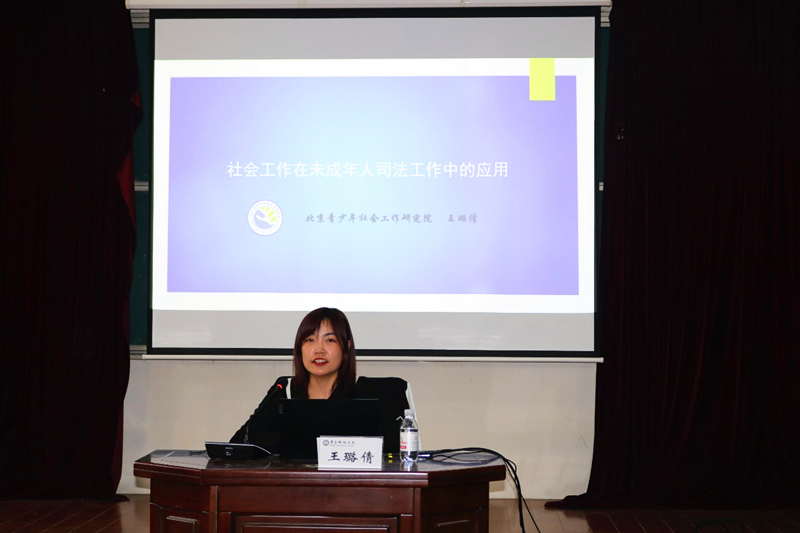 3月29日下午,北京超越青少年社工事务所副主任王璐倩受邀在模拟法庭为太阳成集团tyc9728师生讲授了主题为“社会工作在未成年人司法工作中的应用”的学术报告。讲座由太阳成集团tyc9728王琪老师主持,太阳成集团tyc9728师生聆听了此次讲座。